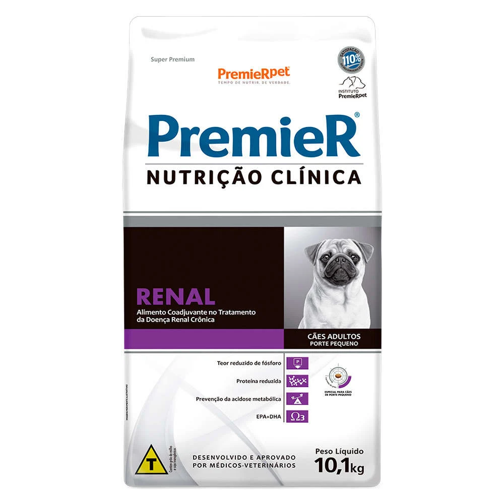 Premier Nutrição Clínica Renal Cães Pequeno Porte 10,1KG: Alimento completo e balanceado com fórmula inovadora que oferece suporte nutricional essencial para cães com doença renal, proporcionando-lhes mais qualidade de vida, bem-estar e retardando a progressão da doença.
