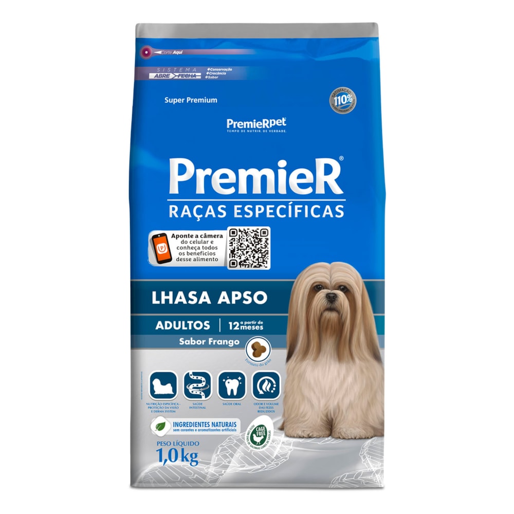Desenvolvida com nobres ingredientes e alta tecnologia Ração Premier Raças Específicas Para Cães Adultos Lhasa Apso Sabor Frango oferece benefícios exclusivos para minimizar os problemas de saúde das raças específicas. É um alimento completo para manter a saúde e a beleza do seu cão. Ela oferece a redução do volume e odor das fezes através do Extrato de Yucca. Com 29% de proteína, é indicado para cães adultos da raça Lhasa Apso em manutenção. A Ração Premier Raças Específicas Para Cães Adultos Lhasa Apso Sabor Frango possuí Ômegas 3 e 6 e Zinco que ajudam a manter a pele protegida reduzindo a queda de pelos e não contém corantes e nem aromatizantes artificiais. As proteínas da Ração Premier Raças Específicas Para Cães Adultos Lhasa Apso Sabor Frango são de altíssima qualidade e seus ingredientes naturais resultando em alta palatabilidade. Cuidam da saúde intestinal e oral. Sua composição também é enriquecida de Vitamina A, C, E, B12, D3 e K3 que facilitam a absorção e equilibram a demanda nutricional do seu cão, e também contém a Taurinapara uma longevidade ativa, proporcionando mais vigor para as atividades do seu cão dia a dia.