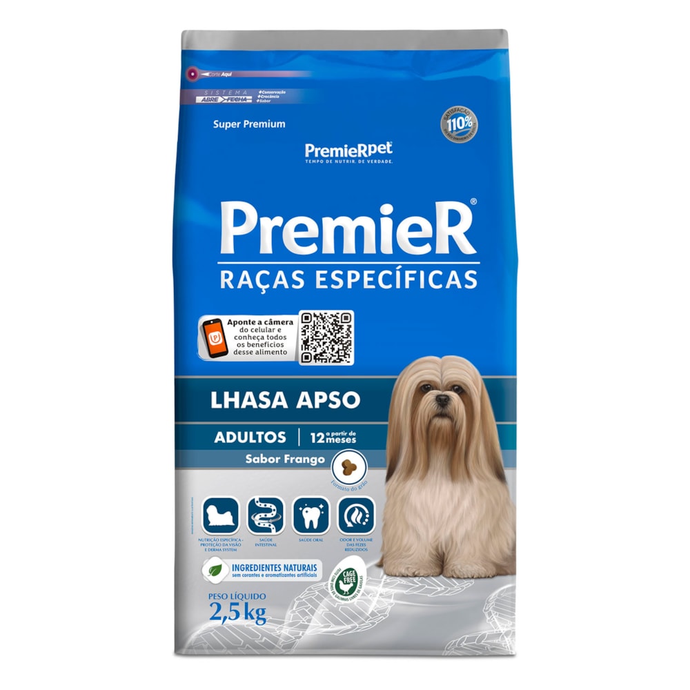 Desenvolvida com nobres ingredientes e alta tecnologia Ração Premier Raças Específicas Para Cães Adultos Lhasa Apso Sabor Frango oferece benefícios exclusivos para minimizar os problemas de saúde das raças específicas. É um alimento completo para manter a saúde e a beleza do seu cão. Ela oferece a redução do volume e odor das fezes através do Extrato de Yucca. Com 29% de proteína, é indicado para cães adultos da raça Lhasa Apso em manutenção. A Ração Premier Raças Específicas Para Cães Adultos Lhasa Apso Sabor Frango possuí Ômegas 3 e 6 e Zinco que ajudam a manter a pele protegida reduzindo a queda de pelos e não contém corantes e nem aromatizantes artificiais. As proteínas da Ração Premier Raças Específicas Para Cães Adultos Lhasa Apso Sabor Frango são de altíssima qualidade e seus ingredientes naturais resultando em alta palatabilidade. Cuidam da saúde intestinal e oral. Sua composição também é enriquecida de Vitamina A, C, E, B12, D3 e K3 que facilitam a absorção e equilibram a demanda nutricional do seu cão, e também contém a Taurinapara uma longevidade ativa, proporcionando mais vigor para as atividades do seu cão dia a dia.