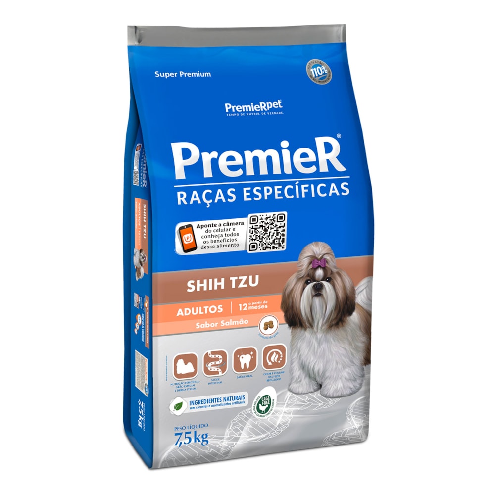 Desenvolvida com nobres ingredientes e alta tecnologia a Ração Premier Raças Específicas Para Cães Adultos Shih Tzu Sabor Salmão oferece benefícios exclusivos para minimizar os problemas de saúde das raças específicas. É um alimento completo para manter a saúde e a beleza do seu cão. Ela oferece a redução do volume e odor das fezes através do Extrato de Yucca. Com 25% de proteína, é indicado para cães adultos da raça Shih Tzu em manutenção. A Ração Premier Raças Específicas Para Cães Adultos Shih Tzu Sabor Salmão possuí Ômegas 3 e 6 e Zinco que ajudam a manter a pele protegida reduzindo a queda de pelos e não contém corantes e nem aromatizantes artificiais. As proteínas da Ração Premier Raças Específicas Para Cães Adultos Shih Tzu Sabor Salmão são de altíssima qualidade e seus ingredientes naturais resultando em alta palatabilidade. Cuidam da saúde intestinal e oral. Sua composição também é enriquecida de Vitamina A, C, E, B12, D3 e K3 que facilitam a absorção e equilibram a demanda nutricional do seu cão, também contém Glicosamina e Condroitina que protegem as articulações, proporcionando mais vigor para as atividades do seu cão dia a dia.