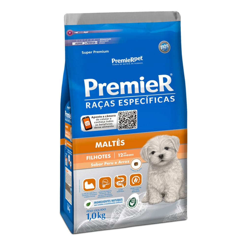 Pensando nas necessidades e particularidades que cada raça tem, a Ração Premier Raças Específicas Para Cães Filhotes Maltês Sabor Peru e Arroz oferece um alimento completo e saboroso desenvolvido com todas as vitaminas e minerais, nutrientes e gorduras que o seu Maltês precisa para viver de forma mais saudável. Oferece o Extrato de Yucca que reduz o odor das fezes em até 50% além de não conter corantes e nem aromatizantes artificiais. Com 31% de proteína, é indicado para cães filhotes da raça Maltês desde o desmame até a idade adulta. Sua fórmula contém Ômegas 3 e 6 e Zinco que ajudam a manter a pele protegida reduzindo a queda de pelos, além do DHA que estimula a capacidade de aprendizagem. As proteínas da Ração Premier Raças Específicas Para Cães Filhotes Maltês Sabor Peru e Arroz são de altíssima qualidade sendo sua fonte a proteína Korin, resultando em alta palatabilidade. Sua composição também é enriquecida de Vitamina A, C, E, B12, D3 e K3 que facilitam a absorção e equilibram a demanda nutricional do seu cão, a Ração Premier Raças Específicas Para Cães Filhotes Maltês Sabor Peru e Arroz proporciona mais vigor para as atividades do seu cão dia a dia.