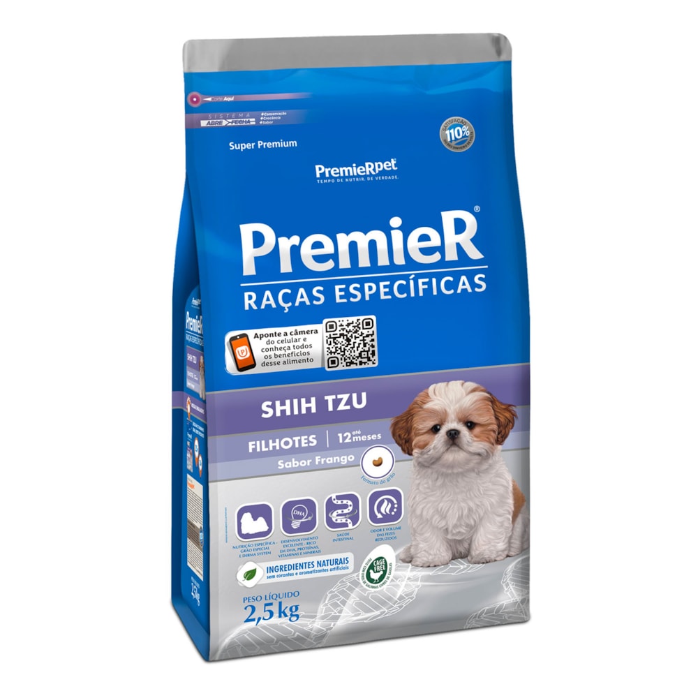 Pensando nas necessidades e particularidades que cada raça tem, a Ração Premier Raças Específicas Para Cães Filhotes Shih Tzu Sabor Frango oferece um alimento completo e saboroso desenvolvido com todas as vitaminas e minerais, nutrientes e gorduras que o seu Shih Tzu precisa para viver de forma mais saudável. Oferece o Extrato de Yucca que reduz o odor das fezes em até 50% além de não conter corantes e nem aromatizantes artificiais. Com 28% de proteína, é indicado para cães filhotes da raça Shih Tzu desde o desmame até a idade adulta. Sua fórmula contém Ômegas 3 e 6 e Zinco que ajudam a manter a pele protegida reduzindo a queda de pelos, além do DHA que estimula a capacidade de aprendizagem. Possui também a Glicosamina e Condroitina que protegem as articulações. As proteínas da Ração Premier Raças Específicas Para Cães Filhotes Shih Tzu Sabor Frango são de altíssima qualidade sendo sua fonte a proteína Korin, resultando em alta palatabilidade. Sua composição também é enriquecida de Vitamina A, C, E, B12, D3 e K3 que facilitam a absorção e equilibram a demanda nutricional do seu cão, a Ração Premier Raças Específicas Para Cães Filhotes Shih Tzu Sabor Frango proporciona mais vigor para as atividades do seu cão dia a dia.