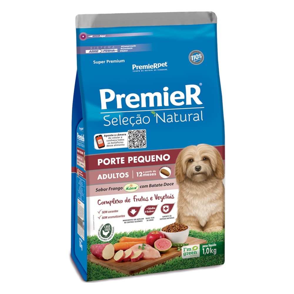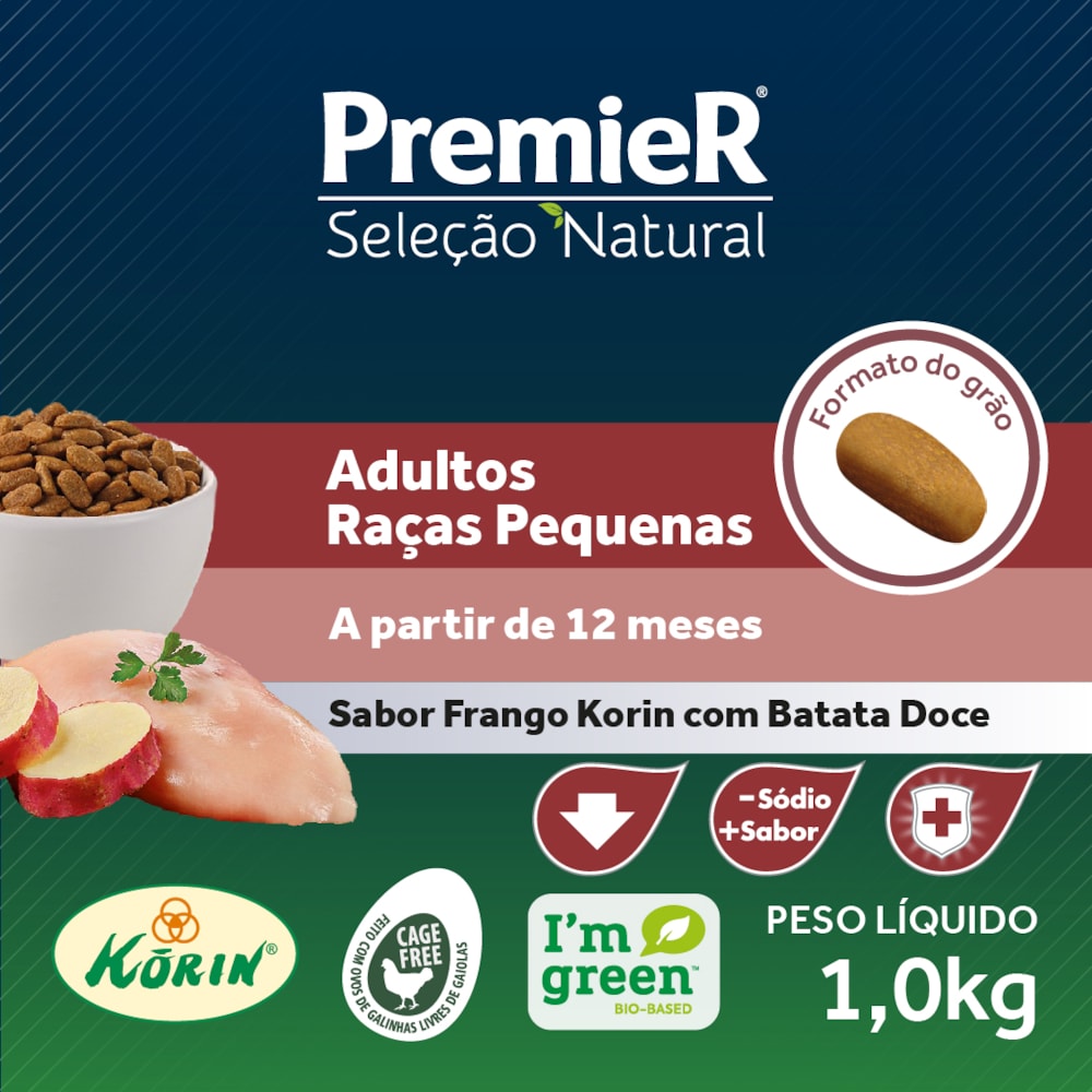 Premier Seleção Natural Batata Doce raças pequenas é mais uma inovação da PremieRpet®. Além de contar com a exclusiva fonte de proteína proveniente do frango Korin, possui na sua formulação a batata doce, que é um ingrediente que favorece o controle glicêmico, proporcionando uma vida saudável e mais equilibrada. Oferece também o complexo de frutas e vegetais, fontes naturais de fibras e sais minerais. E ainda, para manter o sabor natural dos ingredientes, contém baixo teor de sódio.