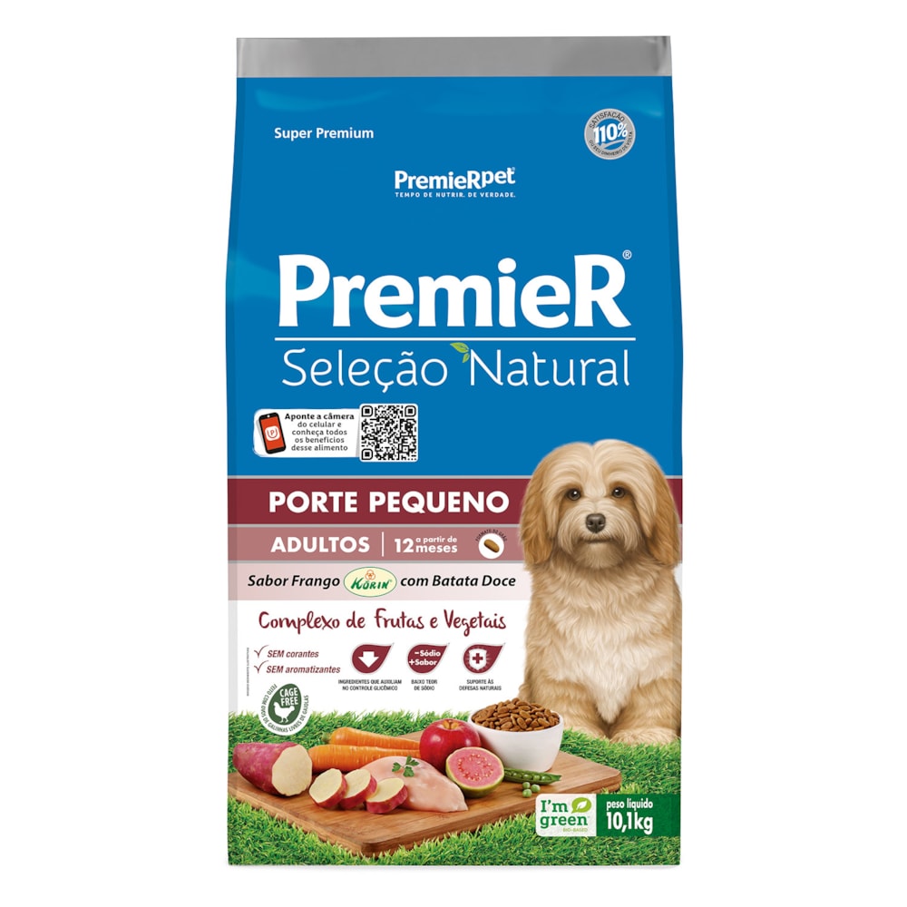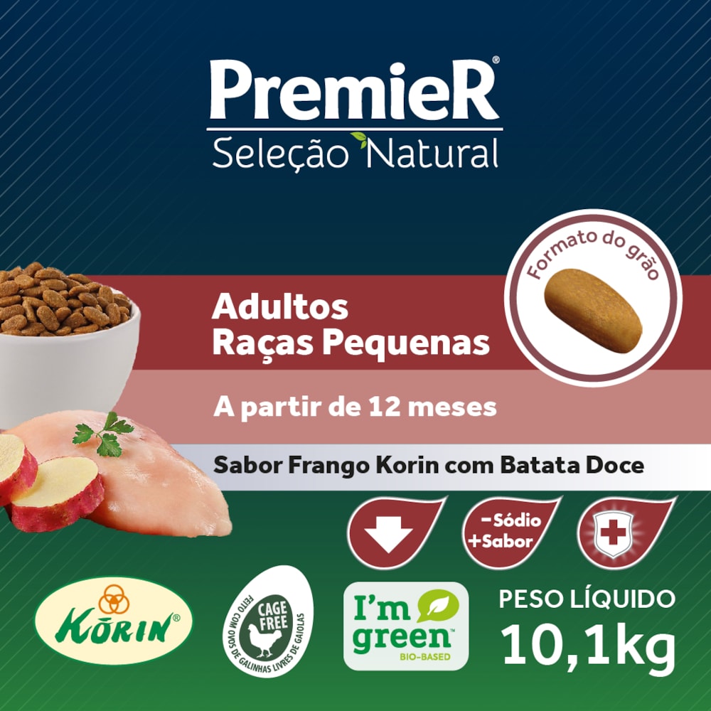 Premier Seleção Natural Batata Doce raças pequenas é mais uma inovação da PremieRpet®. Além de contar com a exclusiva fonte de proteína proveniente do frango Korin, possui na sua formulação a batata doce, que é um ingrediente que favorece o controle glicêmico, proporcionando uma vida saudável e mais equilibrada. Oferece também o complexo de frutas e vegetais, fontes naturais de fibras e sais minerais. E ainda, para manter o sabor natural dos ingredientes, contém baixo teor de sódio.
