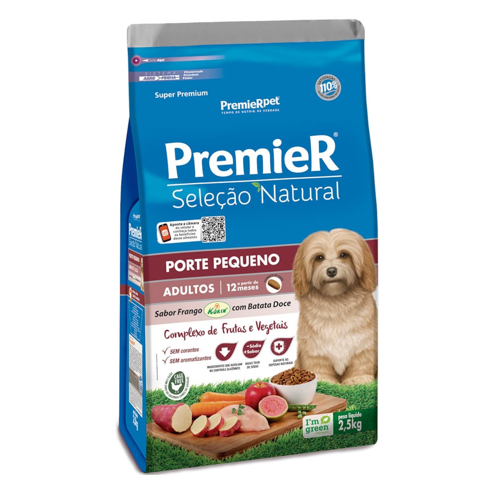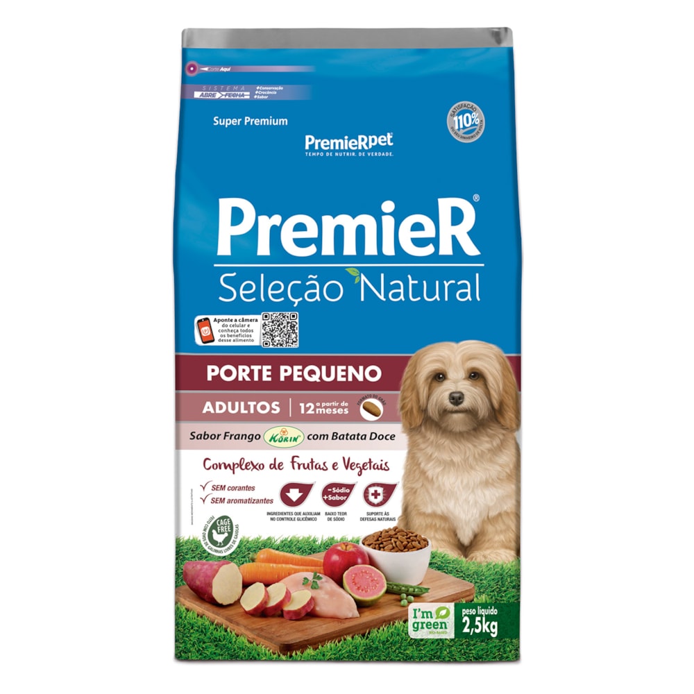 Premier Seleção Natural Batata Doce raças pequenas é mais uma inovação da PremieRpet®. Além de contar com a exclusiva fonte de proteína proveniente do frango Korin, possui na sua formulação a batata doce, que é um ingrediente que favorece o controle glicêmico, proporcionando uma vida saudável e mais equilibrada. Oferece também o complexo de frutas e vegetais, fontes naturais de fibras e sais minerais. E ainda, para manter o sabor natural dos ingredientes, contém baixo teor de sódio.