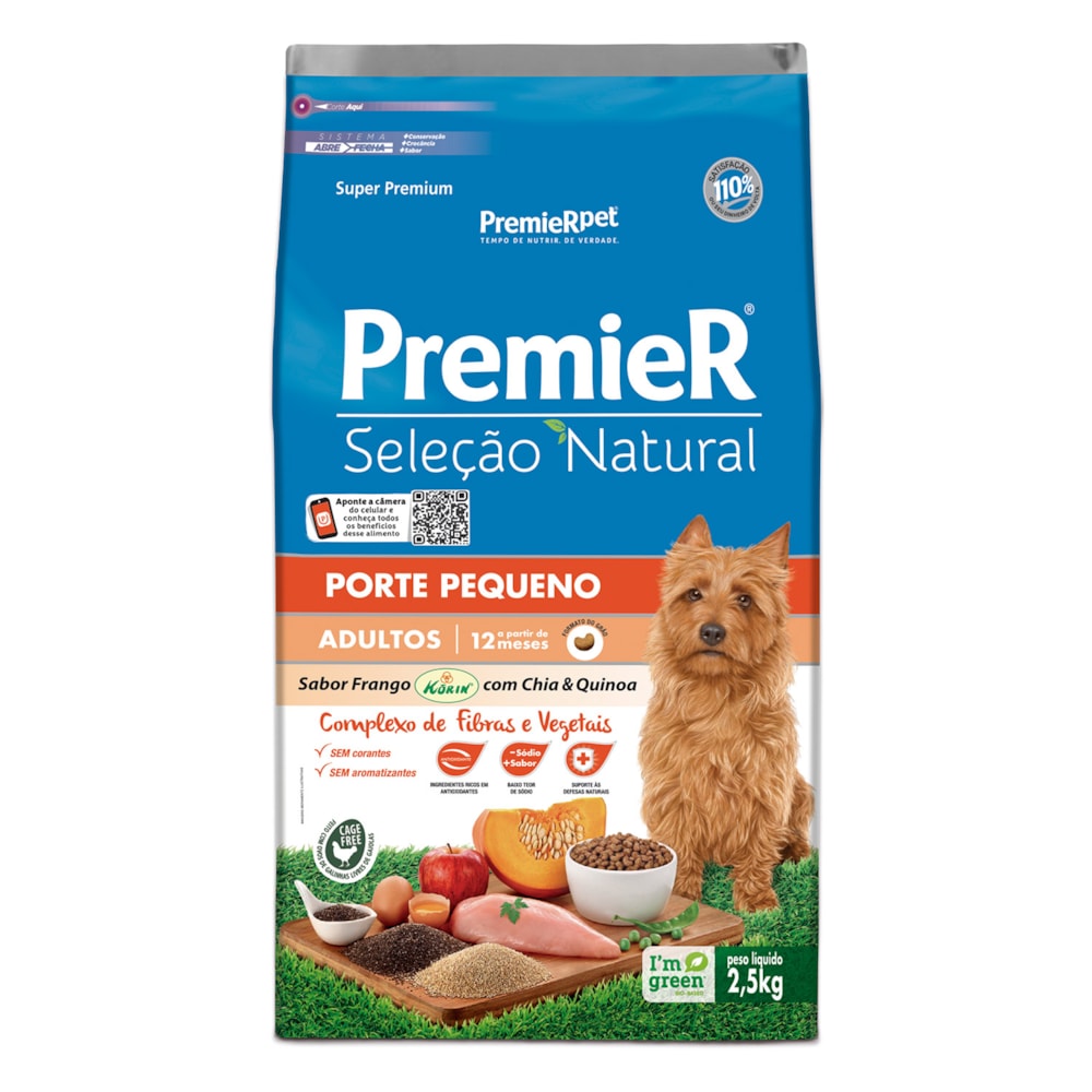 Ração Premier Seleção Natural Cães Adultos Raças Pequenas Frango Korin com Quinoa e Chia 2,5 kg