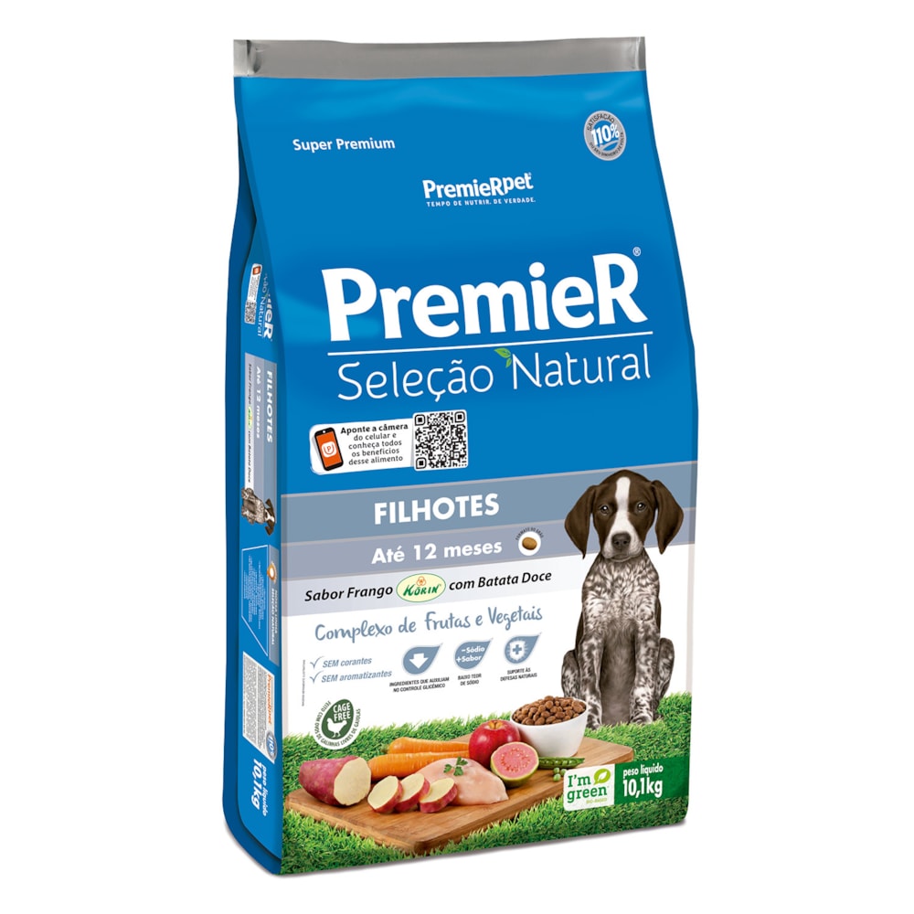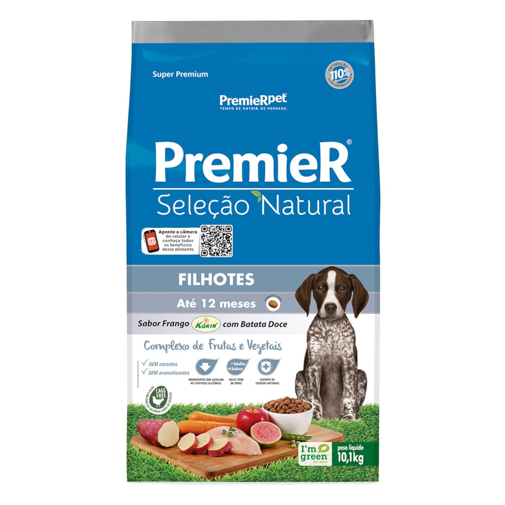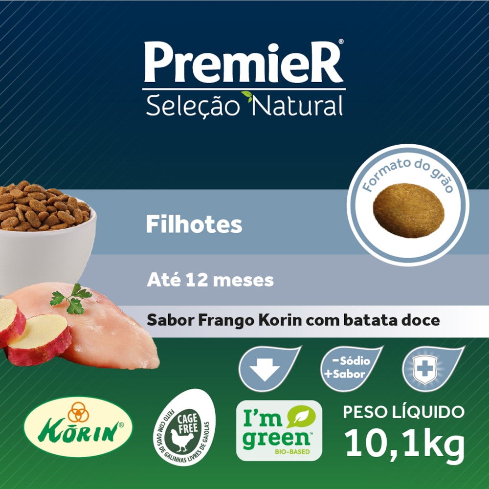 PremieR Seleção Natural Batata Doce Filhotes reúne tecnologia e cuidado para os cães filhotes. Assim como toda a linha PremieR Seleção Natural, preza ainda pela sustentabilidade e bem estar animal. Por este motivo é formulado com a exclusiva proteína de frango Korin, com ovos de galinhas livres de gaiola e sua embalagem é de polietileno verde ( I’m green).