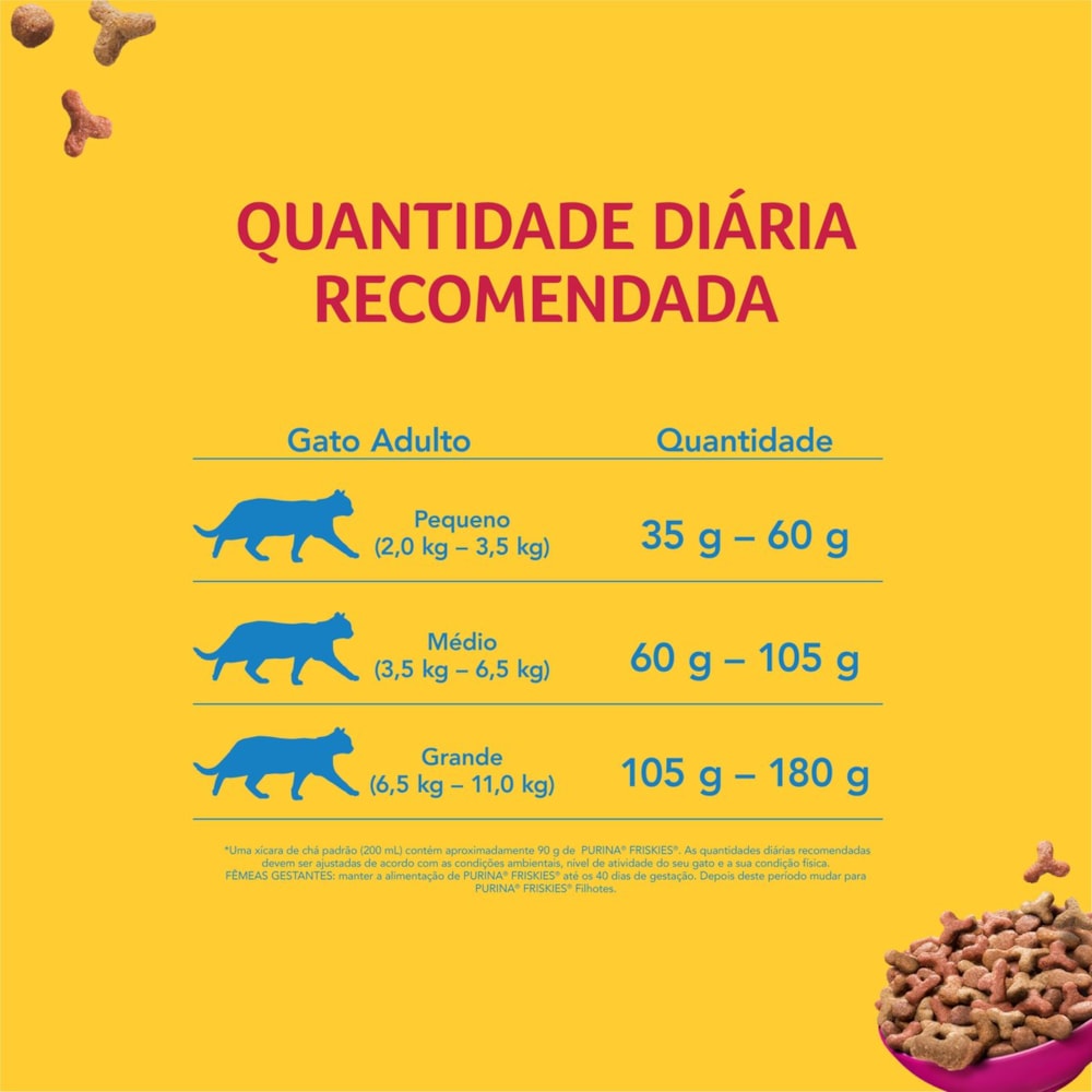 Detalhes do Produto PURINA® FRISKIES® MIX DE CARNES combina ingredientes selecionados em uma deliciosa receita. Possui formatos que brincam com a imaginação do seu gato para que ele tenha nutrição, sabor e diversão todos os dias. Pele e pelos saudáveis graças aos níveis adequados de zinco e ácidos graxos essenciais. Visão clara e saudável devido à adição de vitamina A e taurina. Formulado com vitaminas e minerais que auxiliam nas defesas naturais. Músculos fortes e saudáveis devido à presença de fontes de proteínas de alta qualidade.