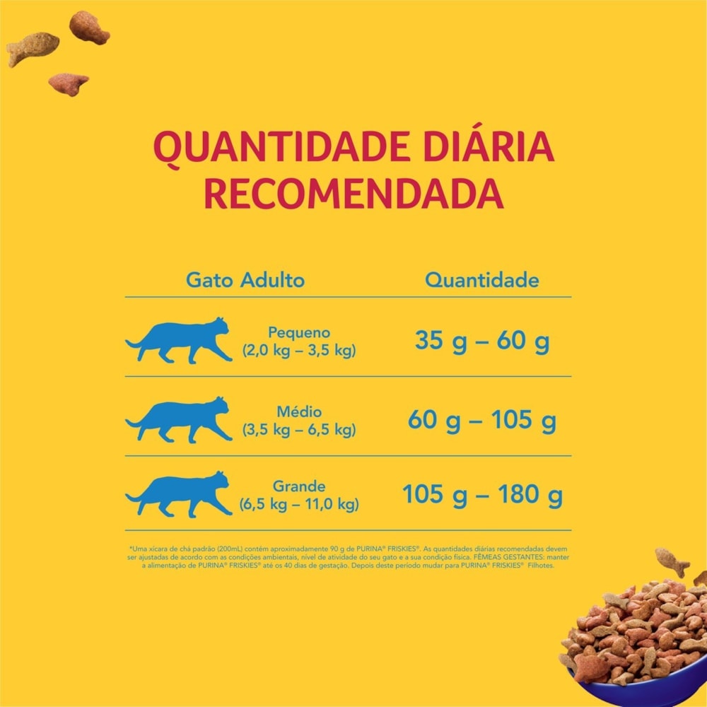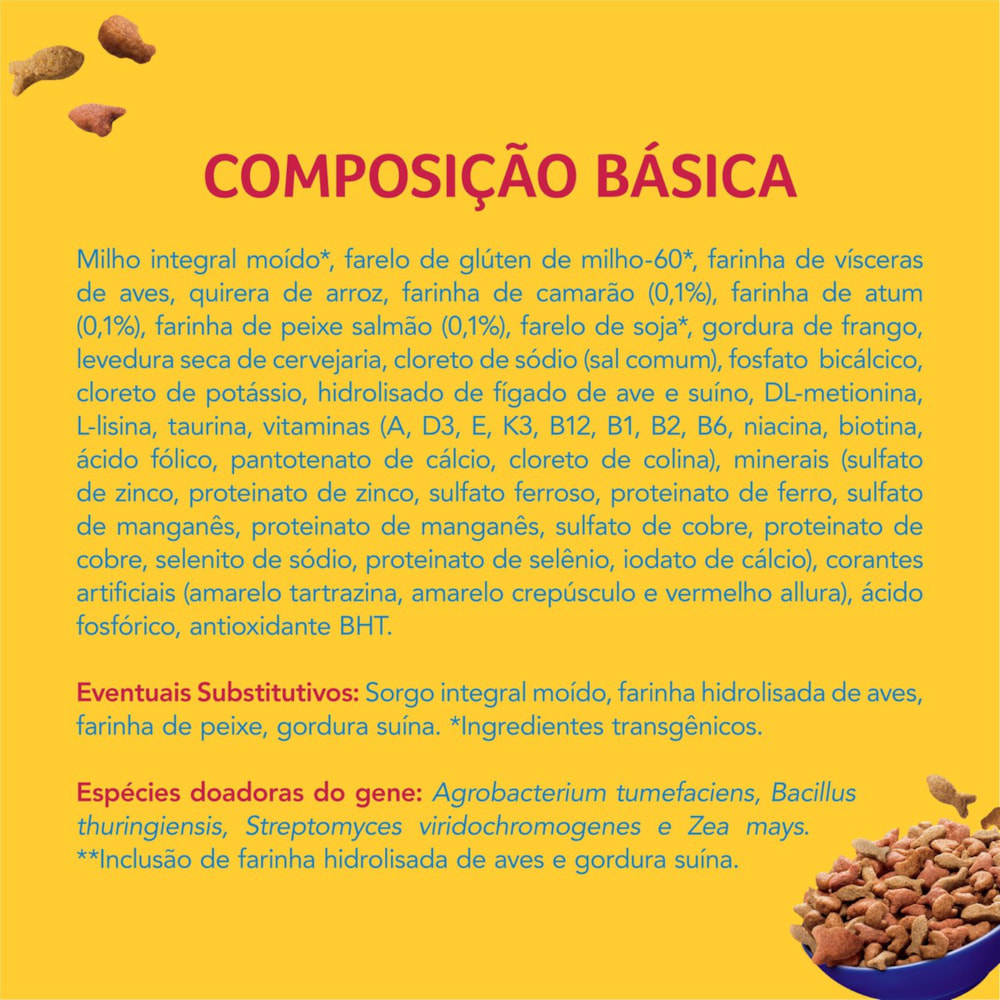 Detalhes do Produto PURINA® FRISKIES® PEIXE E FRUTOS DO MAR combina atum, sardinha e camarão selecionados em uma deliciosa receita. Possui formatos que brincam com a imaginação do seu gato para que ele tenha nutrição, sabor e diversão todos os dias. Pele e pelos saudáveis graças aos níveis adequados de zinco e ácidos graxos essenciais. Visão clara e saudável devido à adição de vitamina A e taurina. Formulado com vitaminas e minerais que auxiliam nas defesas naturais. Músculos fortes e saudáveis devido à presença de fontes de proteínas de alta qualidade.