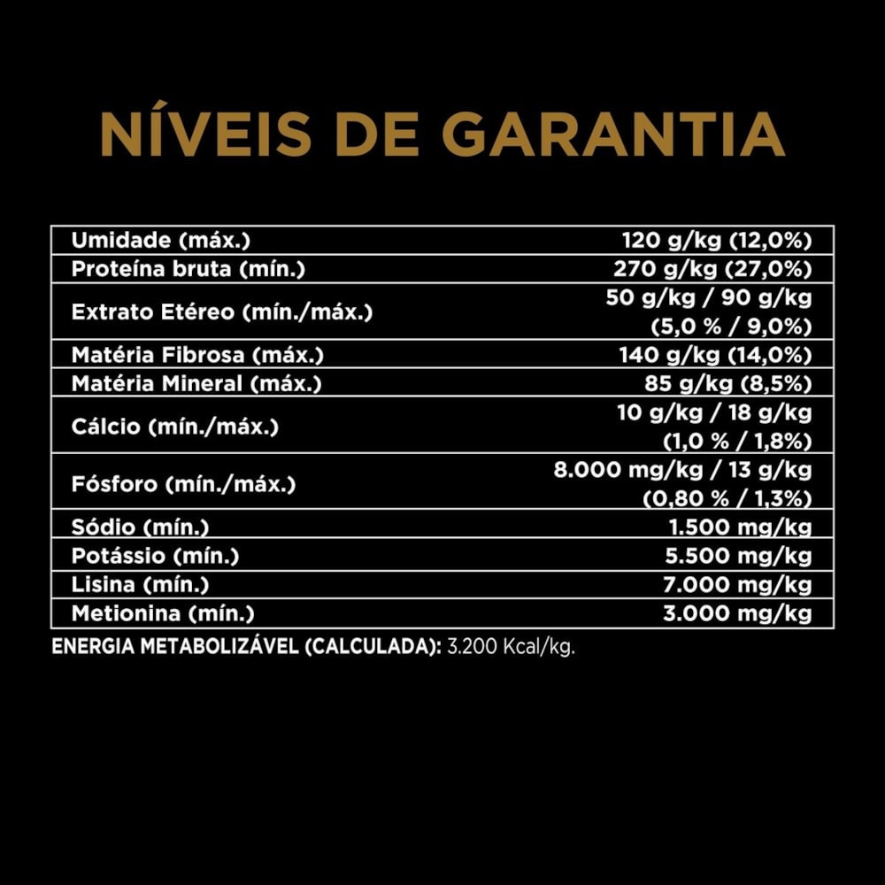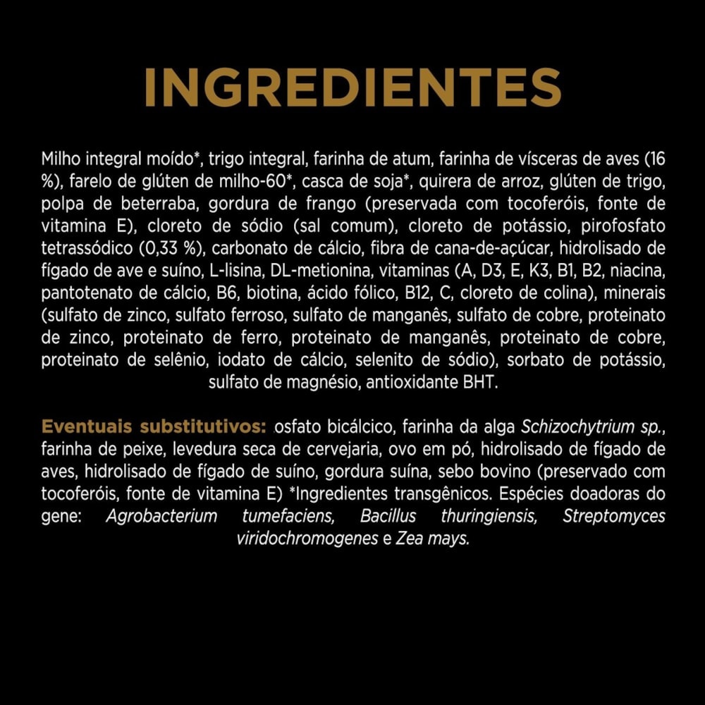 *Em relação à fórmula para cães adultos PURINA® PRO PLAN® Porte Mini e Pequeno (conforme oferecido). **Comparando a fórmula de PRO PLAN ADULTO sem a tecnologia TARTAR CONTROL.Informação Nutricional: Níveis de garantia: Umidade (máx.) 120 g/kg (12,0%) Proteína bruta (mín.) 270 g/kg (27,0%) Extrato Etéreo (mín./máx.) 50 g/kg (5,0%) / 90 g/kg (9,0%) Matéria Fibrosa (máx.) 140 g/kg (14,0%) Matéria Mineral (máx.) 85 g/kg (8,5%) Cálcio (mín./máx.) 10.000 mg/kg / 18 g/kg (1,0% / 1,8%) Fósforo (mín./máx.) 8.000 mg/kg / 13 g/kg (0,80% / 1,3%) Sódio (mín.) 1.500 mg/kg Potássio (mín.) 5.500 mg/kg Lisina (mín.) 7.000 mg/kg Metionina (mín.) 3.000 mg/kgIngredientes: Composição básica: Milho integral moído*, trigo integral, farinha de atum, farinha de vísceras de aves (16 %), farelo de glúten de milho-60*, casca de soja*, quirera de arroz, glúten de trigo, polpa de beterraba, gordura de frango (preservada com tocoferóis, fonte de vitamina E), cloreto de sódio (sal comum), cloreto de potássio, pirofosfato tetrassódico (0,33 %), carbonato de cálcio, fibra de cana-de-açúcar, hidrolisado de fígado de ave e suíno, L-lisina, DL-metionina, vitaminas (A, D3, E, K3, B1, B2, niacina, pantotenato de cálcio, B6, biotina, ácido fólico, B12, C, cloreto de colina), minerais (sulfato de zinco, sulfato ferroso, sulfato de manganês, sulfato de cobre, proteinato de zinco, proteinato de ferro, proteinato de manganês, proteinato de cobre, proteinato de selênio, iodato de cálcio, selenito de sódio), sorbato de potássio, sulfato de magnésio, antioxidante BHT. Eventuais substitutivos: fosfato bicálcico, farinha da alga Schizochytrium sp., farinha de peixe, levedura seca de cervejaria, ovo em pó, hidrolisado de fígado de aves, hidrolisado de fígado de suíno, gordura suína, sebo bovino (preservado com tocoferóis, fonte de vitamina E) *Ingredientes transgênicos. Espécies doadoras do gene: Agrobacterium tumefaciens, Bacillus thuringiensis, Streptomyces viridochromogenes e Zea mays. Enriquecimento por kg de produto (mín.): Vitaminas: A (20.000UI), D3 (1.600 UI), E (500 UI), K3 (0,1 mg), B1 (22 mg), B2 (13 mg), B3 (130 mg), B5 (28 mg), B6 (11 mg), B7 (0,08 mg), B9 (3 mg), B12 (70µg), C (120 mg), Colina (950 mg); Minerais: Ferro (140 mg), Manganês (45 mg), Iodo (1,5 mg), Zinco ( 130mg ), Cobre (10mg), Selênio(0,2mg). Você já conhece a Agrosolo?Código de Barras 7891000246061