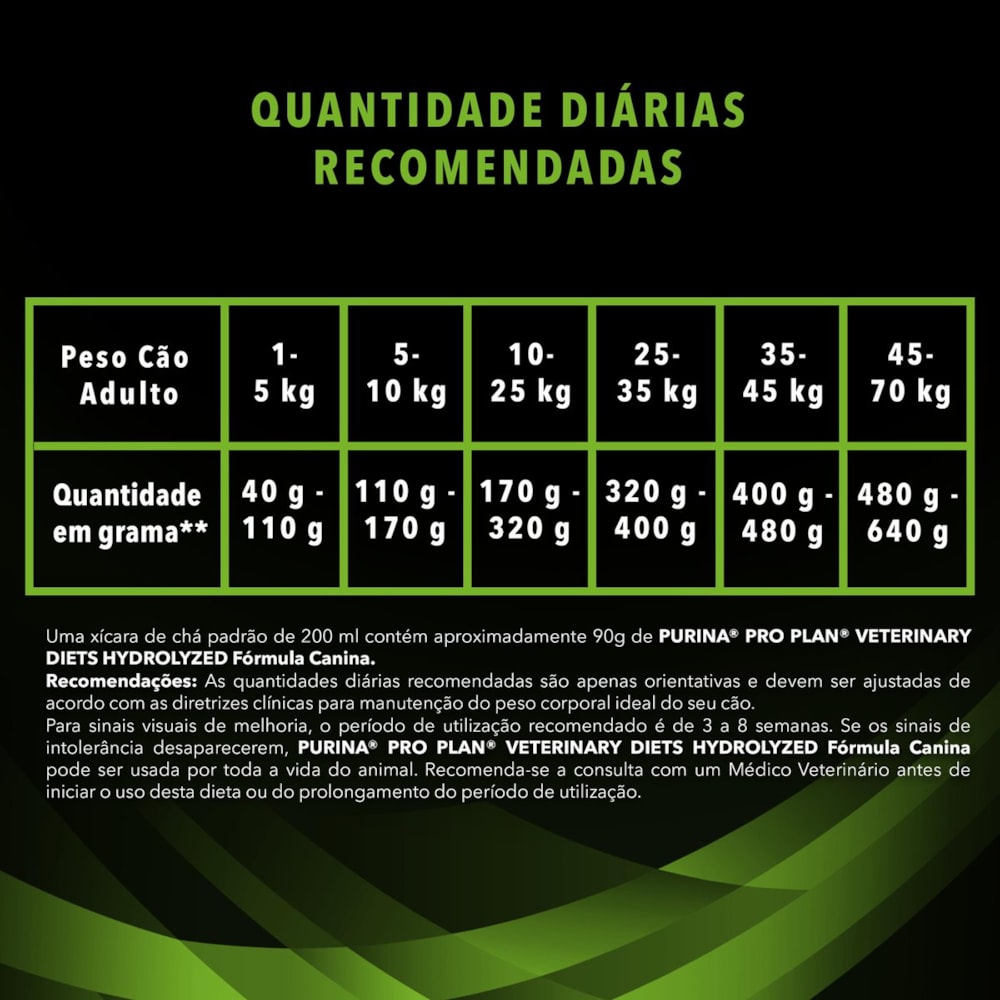 Detalhes do Produto PURINA PRO PLAN HA Hydrolized foi desenvolvida por médicos veterinários, cientistas e nutricionistas com a mais alta tecnologia Nestlé Purina e ingredientes selecionados. Desenvolvida para atuar como um alimento coadjuvante seco para cães adultos, indicado para auxiliar no tratamento de alergias ou intolerâncias alimentares. Este alimento também pode ser indicado como dieta de eliminação, na doença intestinal inflamatória crônica, enteropatias