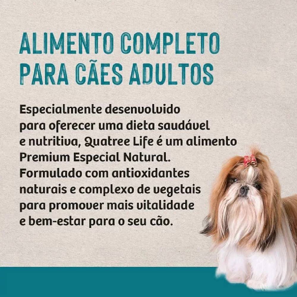 Quatree Life Adultos Raças Pequenas é mais do que uma simples ração para cães; é uma fonte de cuidado e bem-estar em cada refeição. Formulado com ingredientes cuidadosamente selecionados para promover uma saúde ótima, esta ração oferece uma nutrição completa e equilibrada para o seu amigo de quatro patas.