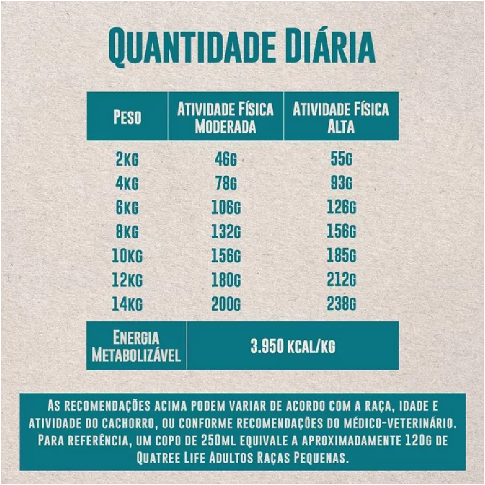 E para completar, Quatree Life é rico em ácidos graxos essenciais ômegas 3 e 6, biotina e zinco quelatado, que mantêm a saúde da pele e a beleza da pelagem do seu cão, proporcionando uma aparência deslumbrante e uma pele saudável.