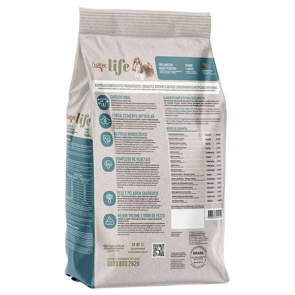 Ração Quatree Life Cães Adultos Raças Pequenas Frango e Arroz 10,1 kg