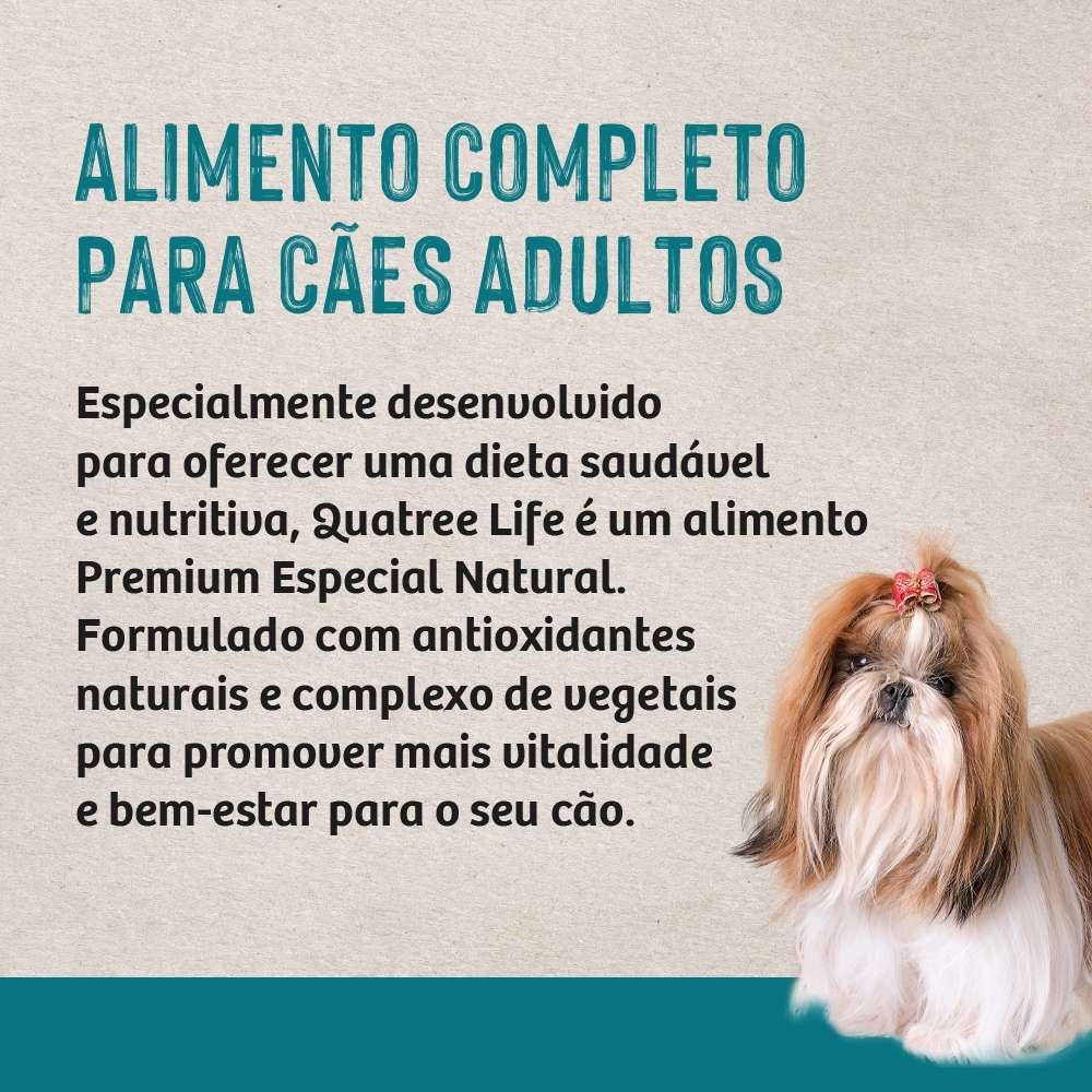 Com Quatree Life, você está oferecendo ao seu cão mais do que apenas uma refeição; você está proporcionando a ele uma vida cheia de saúde, vitalidade e bem-estar.