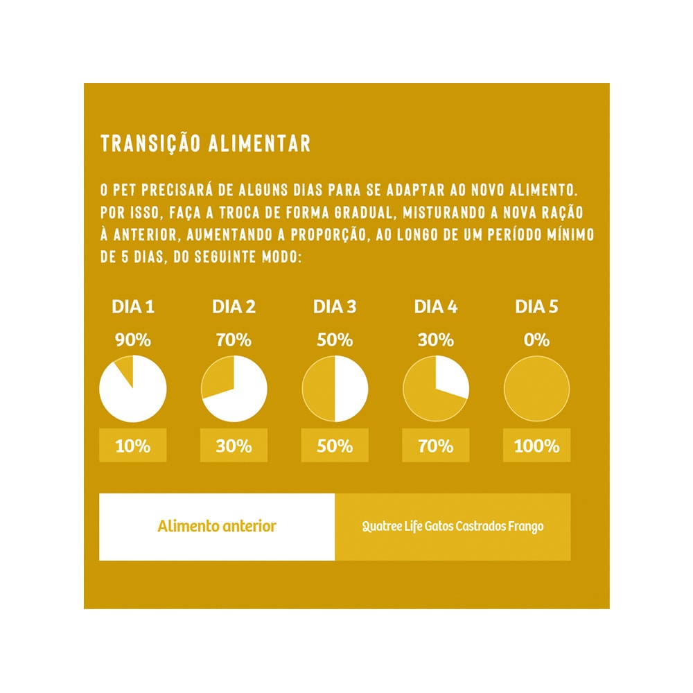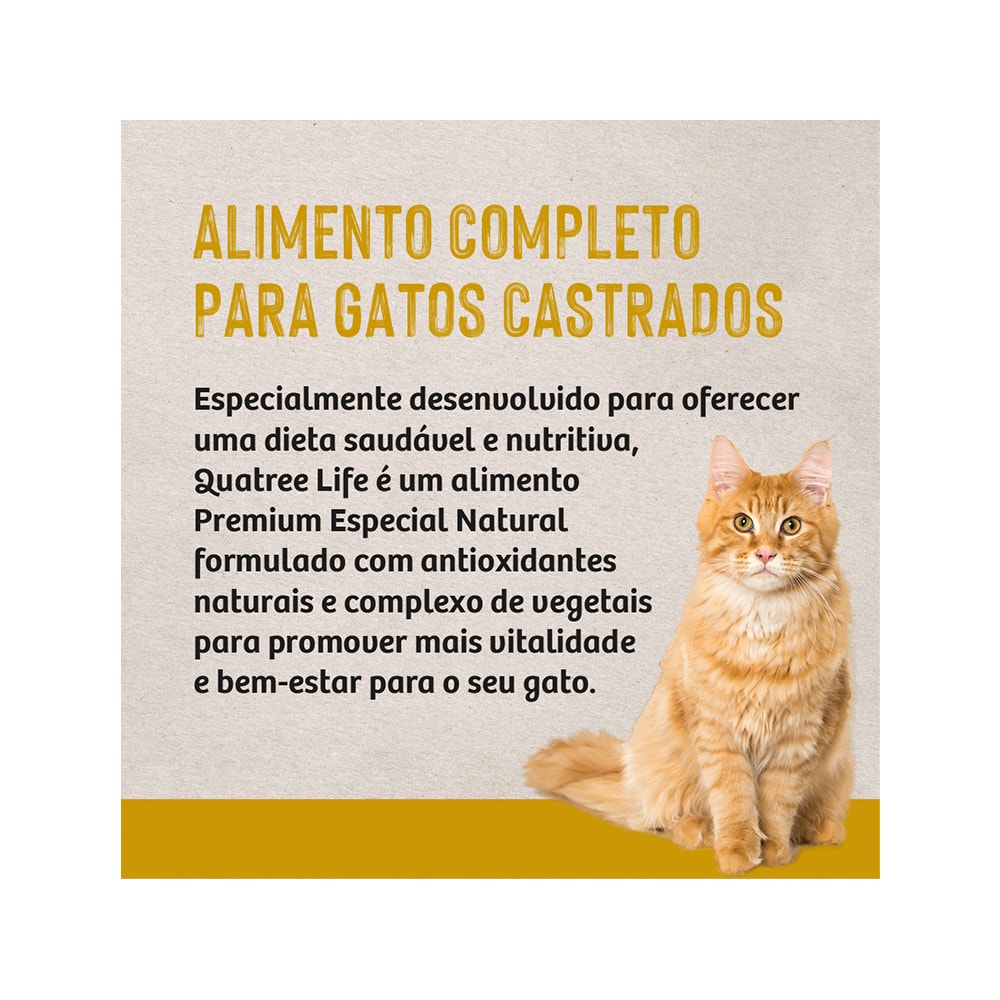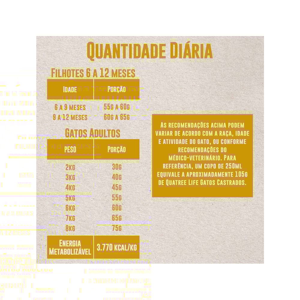 E para completar, Quatree Life é rico em ácidos graxos essenciais ômegas 3 e 6, biotina e zinco quelatado, que mantêm a saúde da pele e a beleza da pelagem do seu cão, proporcionando uma aparência deslumbrante e uma pele saudável.
