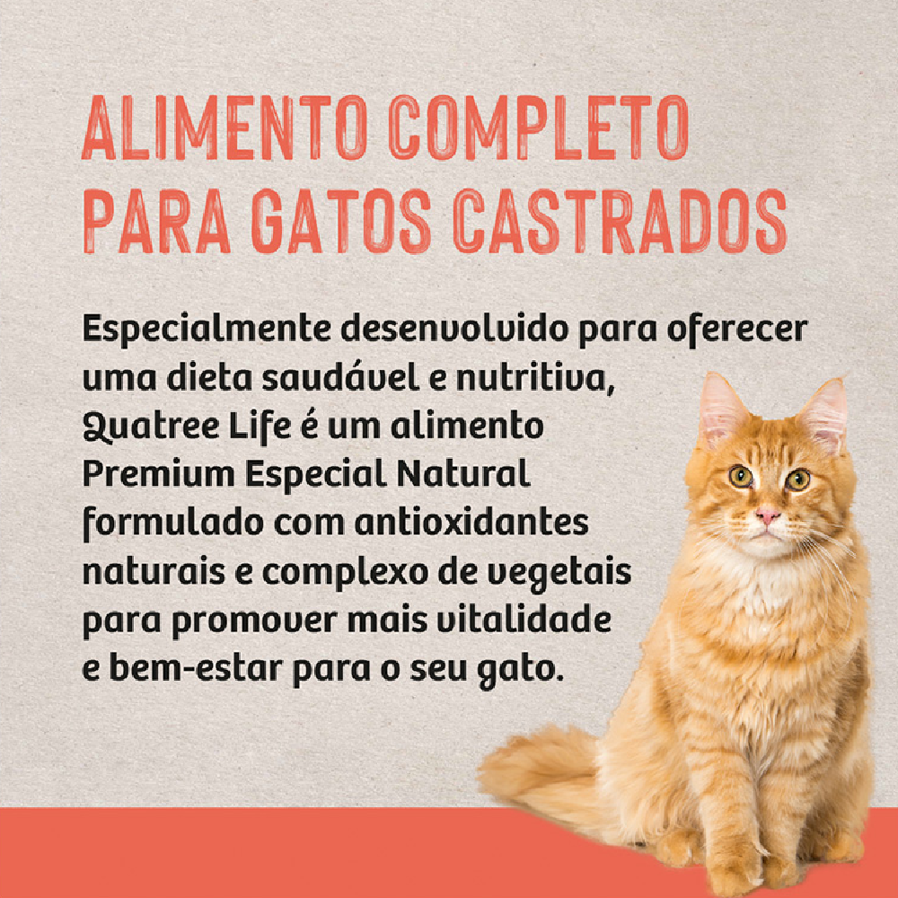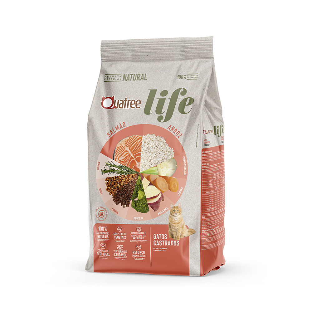 A Ração Quatree Life Gatos Adultos Castrados Sabor Salmão e Arroz 10,1 kg é a escolha ideal para quem busca um alimento completo, saboroso e nutritivo para seu gato castrado. Garanta a ele uma vida longa, saudável e feliz!