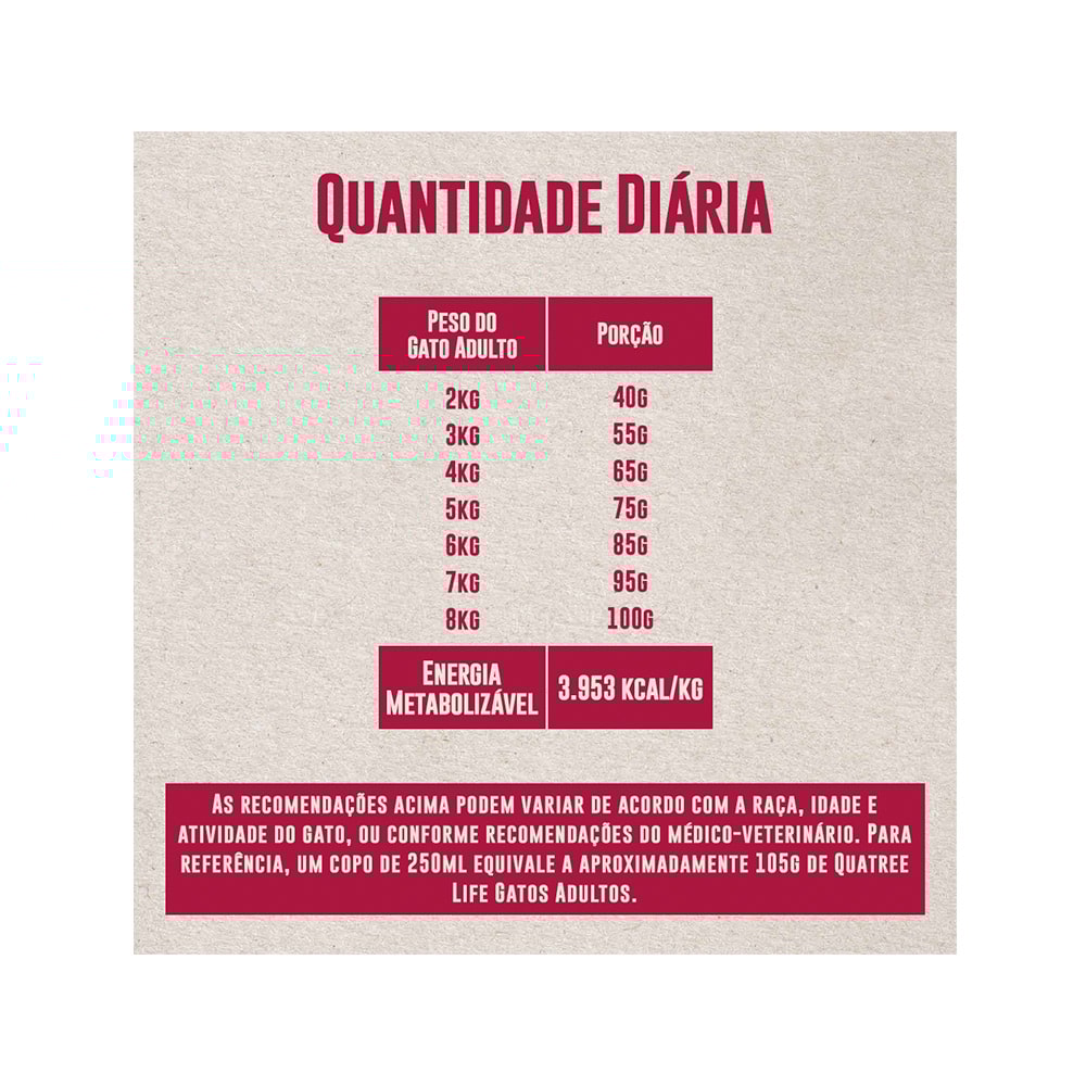 Com Quatree Life, você está oferecendo ao seu gato mais do que apenas uma refeição; você está proporcionando a ele uma vida cheia de saúde, vitalidade e bem-estar.