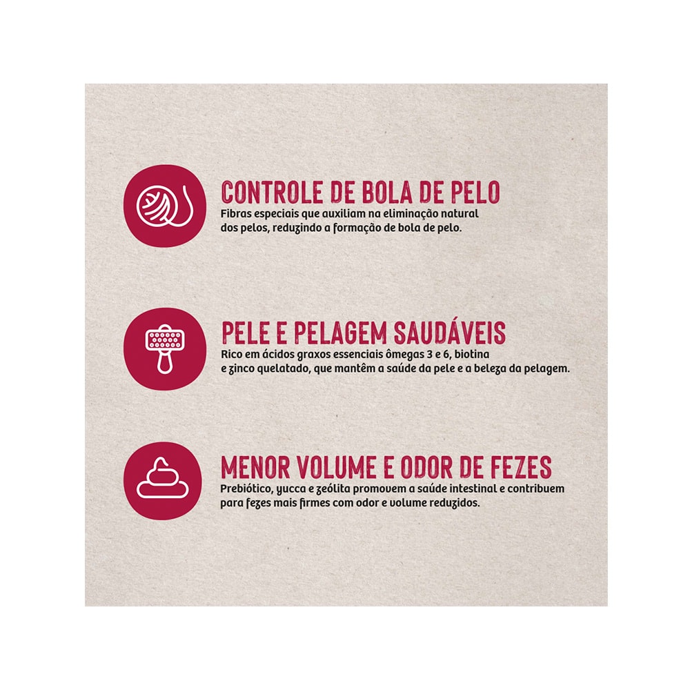 E para completar, a Quatree Life é rica em ácidos graxos essenciais ômegas 3 e 6, biotina e zinco quelatado, que mantêm a saúde da pele e a beleza da pelagem do seu felino, proporcionando uma aparência deslumbrante e uma pele saudável.
