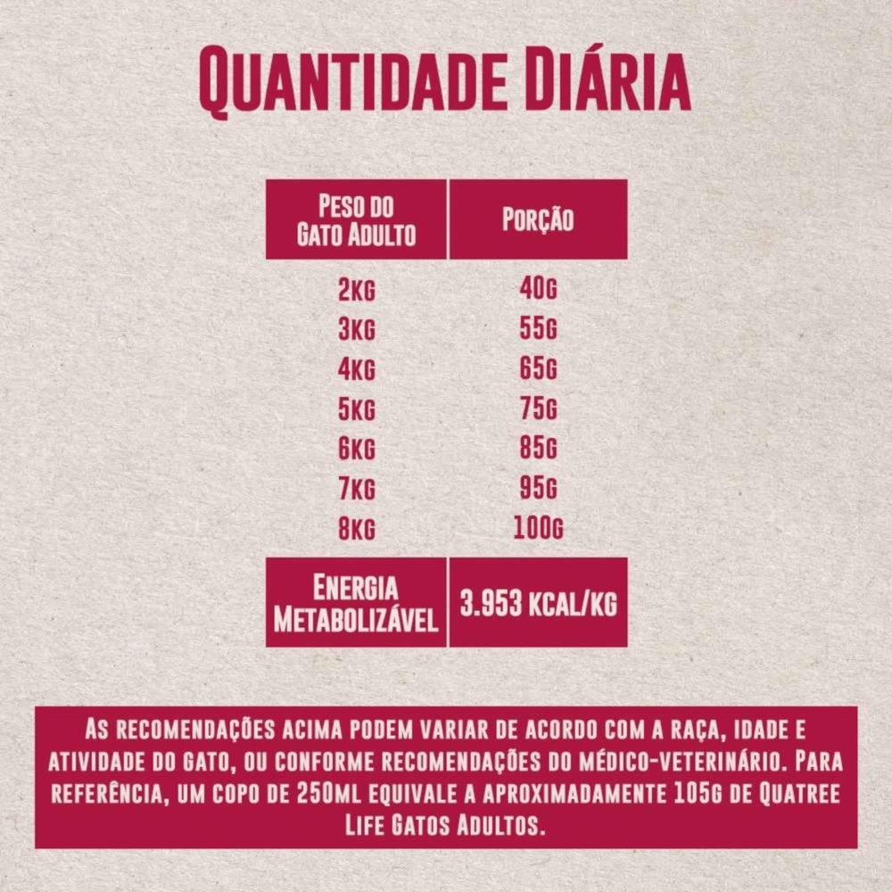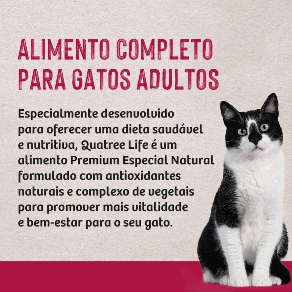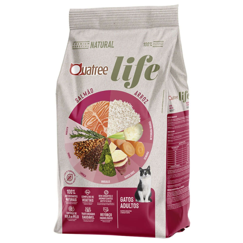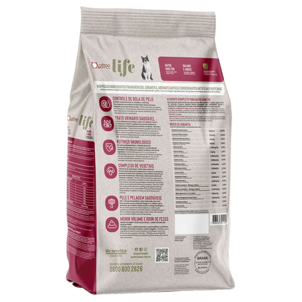 Análise NutricionalDê ao seu gato adulto o presente de uma vida mais saudável, feliz e saborosa com a Ração Quatree Life Gatos Adultos Salmão e Arroz!