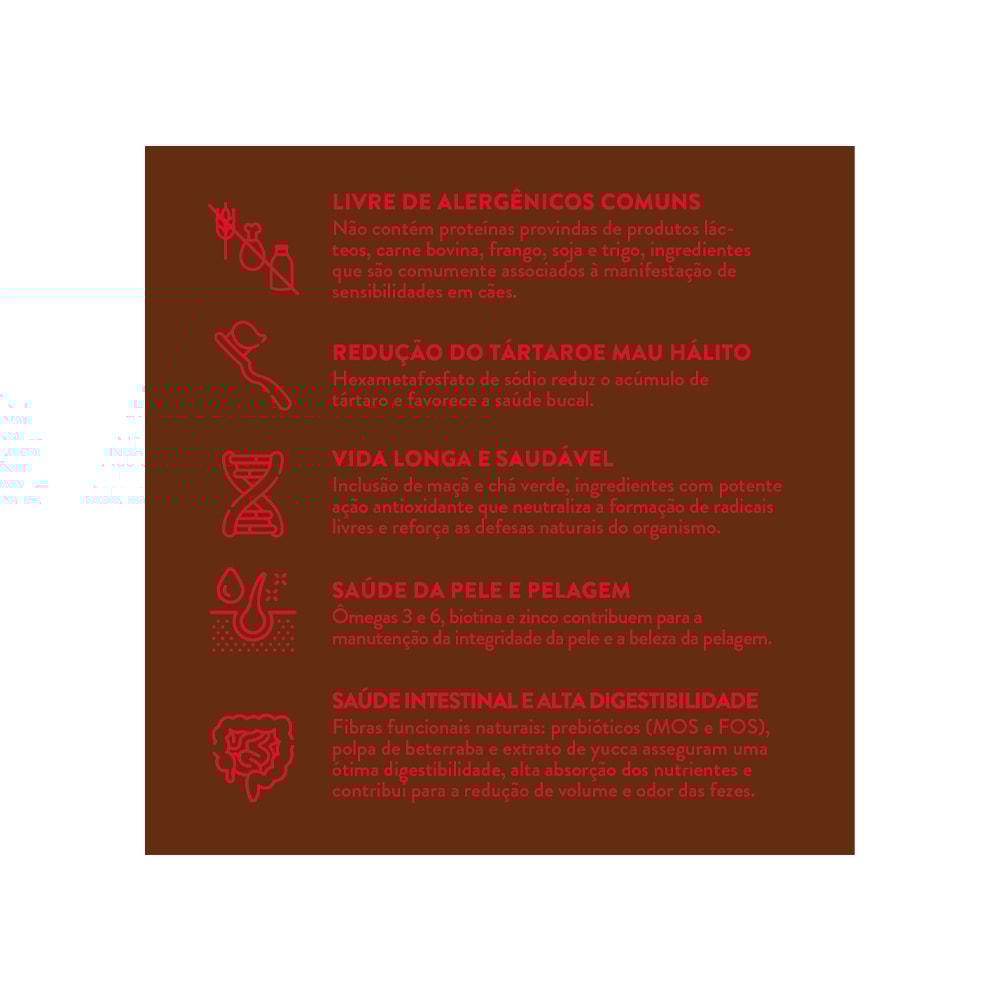 Além disso, esta ração é livre de alergênicos comuns, ajudando a evitar possíveis reações alérgicas e promovendo a saúde da pele e pelagem do seu cão. Com benefícios adicionais, como a redução do tártaro e do mau hálito, a Quatree Supreme Dermato é a escolha ideal para uma vida longa e saudável para o seu companheiro canino.