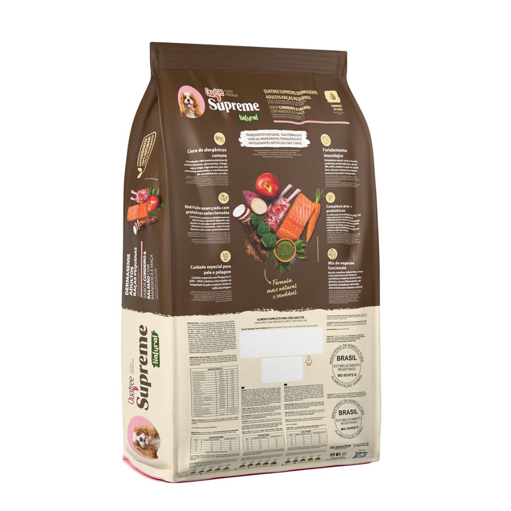 Ração Quatree Supreme Cães Adultos Raças Pequenas Derma Sense Cordeiro e Salmão