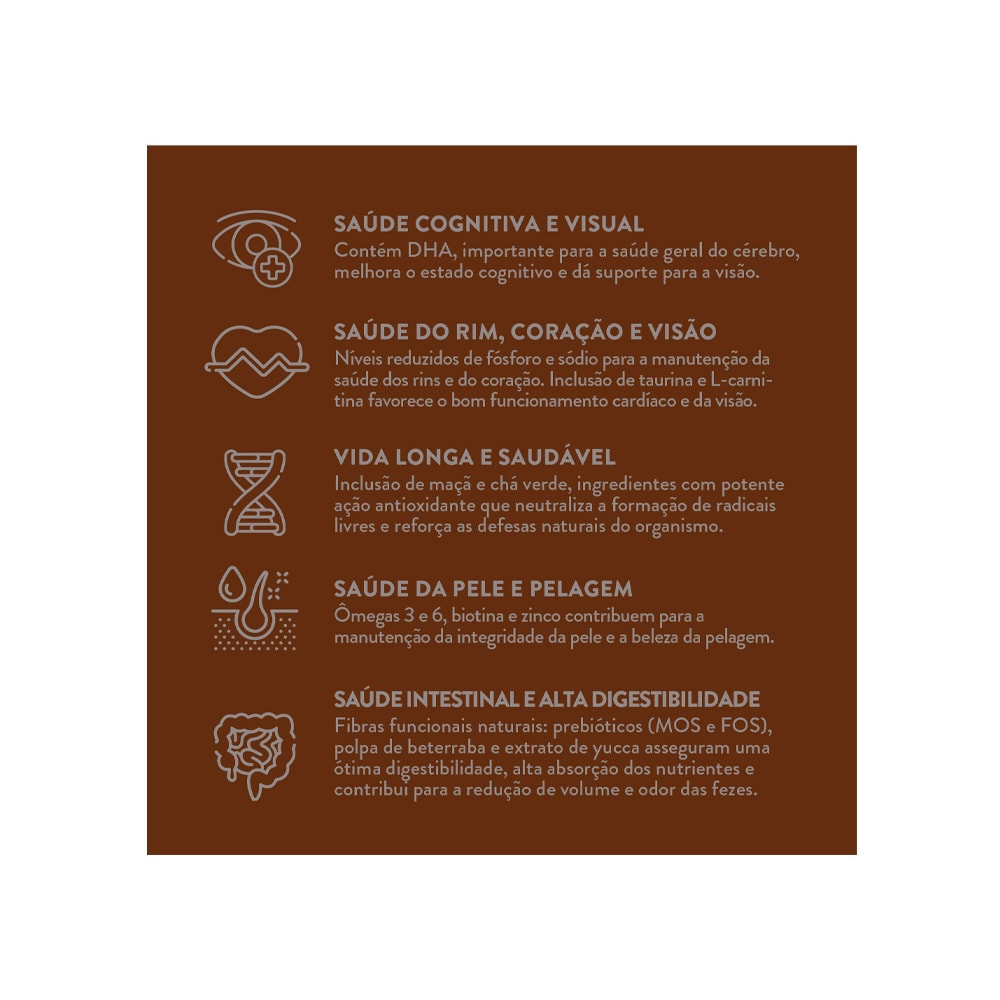 Além disso, a Quatree Supreme Sênior +7 promove uma série de benefícios para a saúde do seu cão, incluindo a manutenção da saúde cognitiva e visual, a saúde do rim e do coração, contribuindo para uma vida longa e saudável.