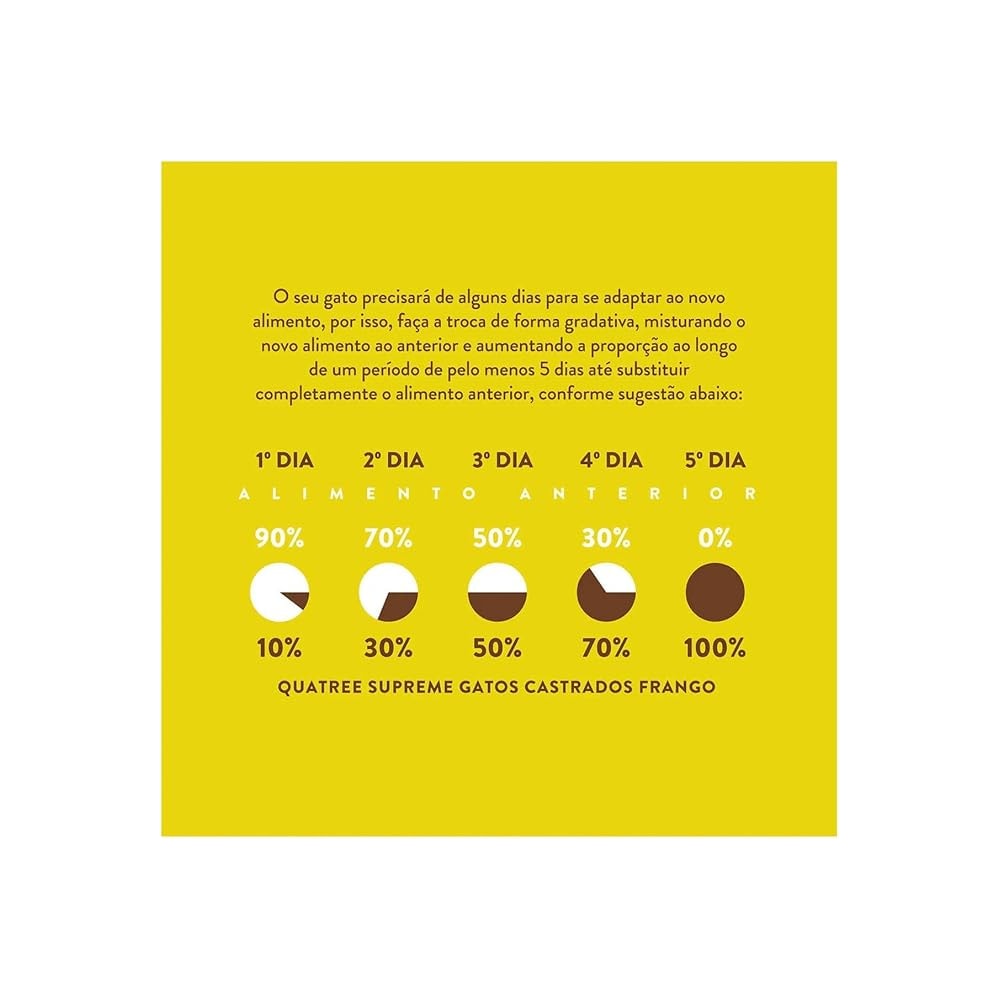 Dica de Uso: Para uma adaptação perfeita, realize a troca da ração antiga para a Quatree Supreme de forma gradual ao longo de 7 dias. Mantenha sempre água fresca e limpa disponível para o seu gato.