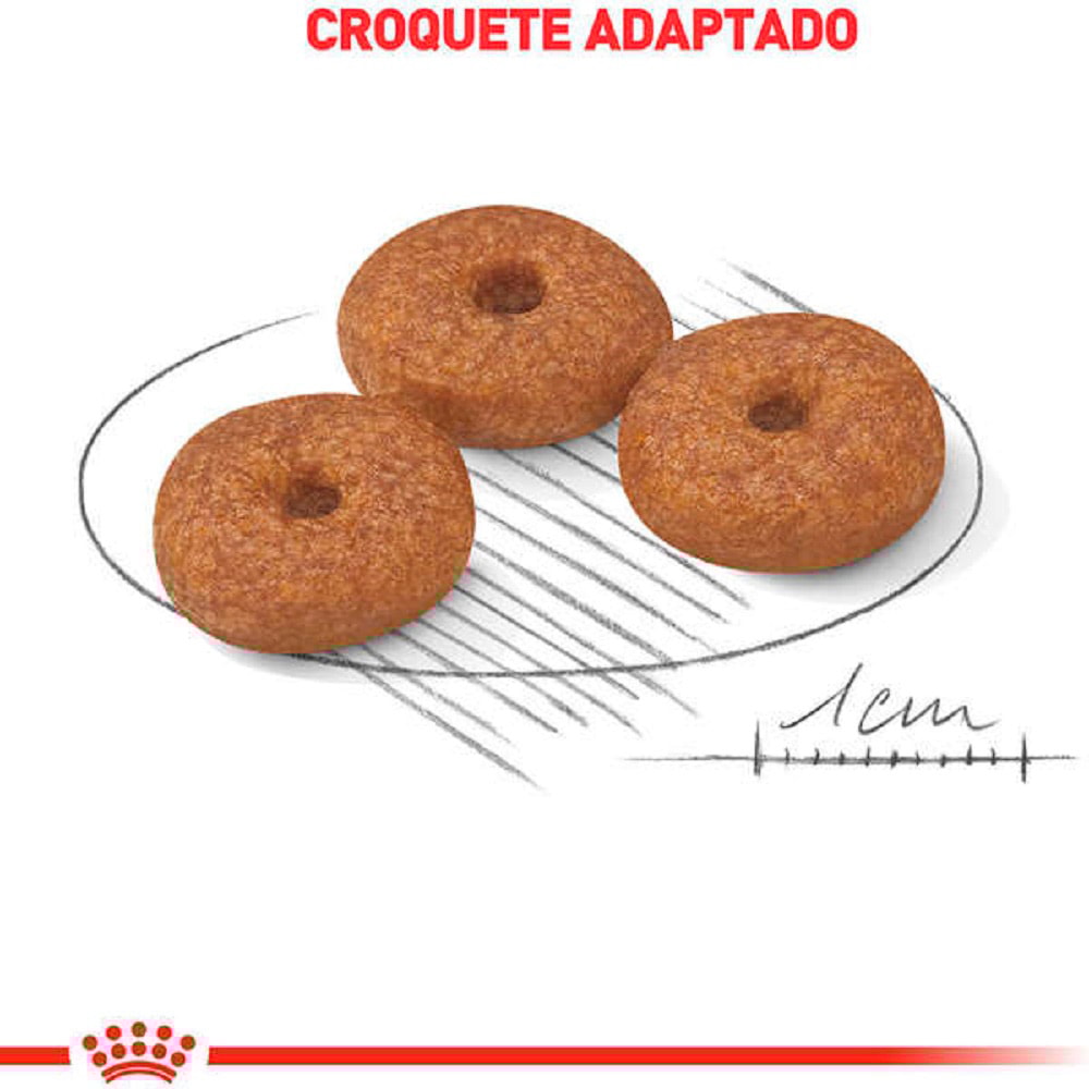 Croquete desenvolvido com precisão para a perfeita adaptação às mandíbulas dos cães pequenos, com até 10 quilos quando adultos. O croquete, de fácil reidratação, facilita o consumo dos cães idosos das raças pequenas.