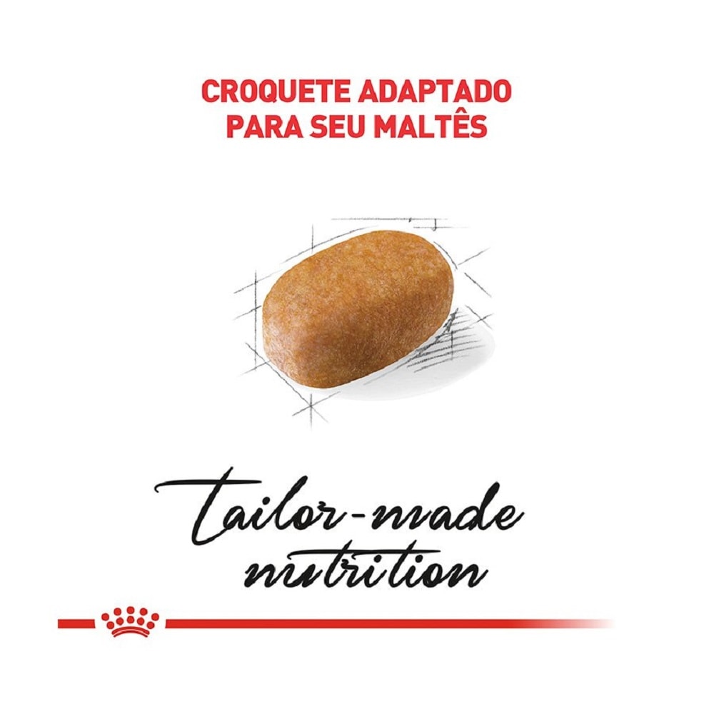 O croquete exclusivo é perfeitamente adaptado para a mandíbula do Maltês adulto.