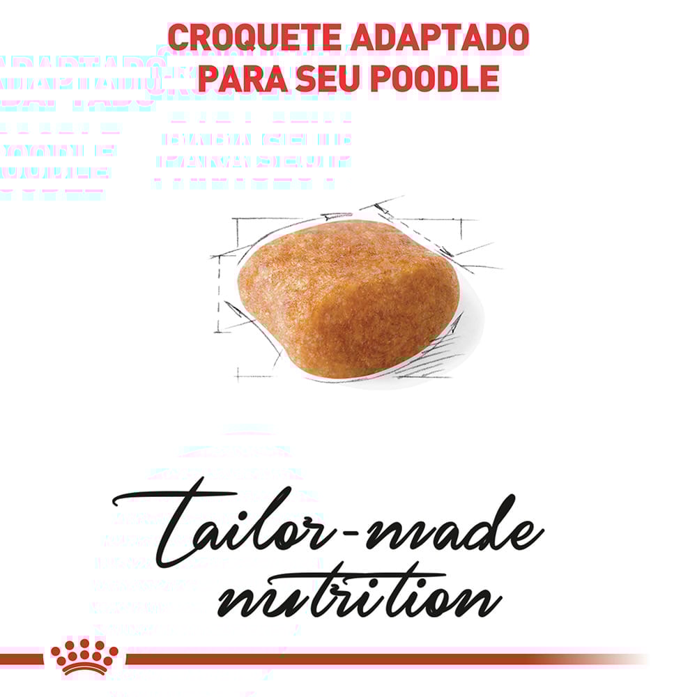 Alimento completo seco para cães adultos e maduros da raça Poodle - A partir de 10 meses de idade.