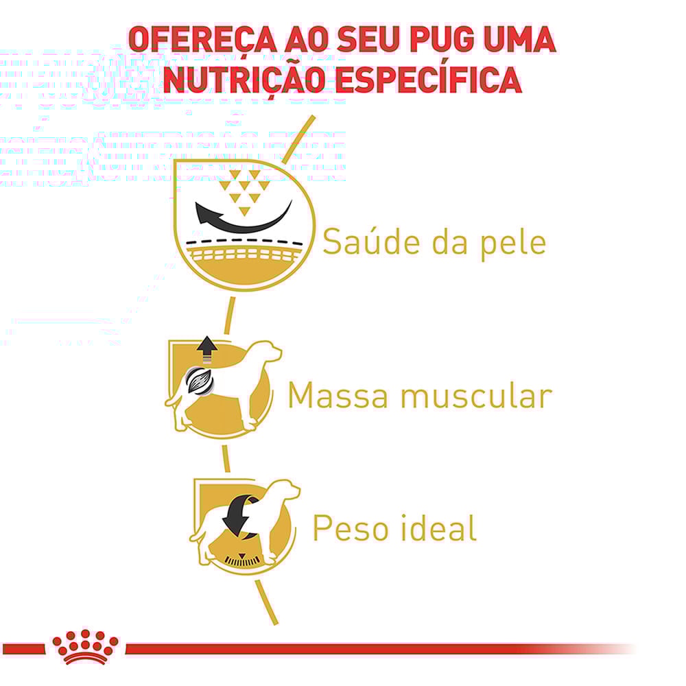 Alimento completo seco para cães adultos e maduros da raça Pug – A partir de 10 meses de idade.