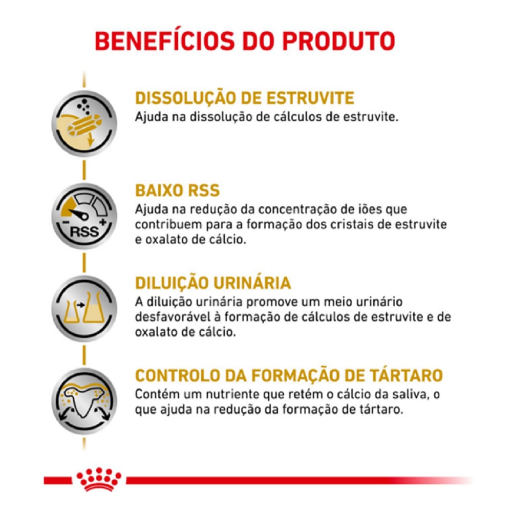 URINARY S/O SMALL DOG é um alimento coadjuvante indicado para cães de pequeno porte, com o objetivo de auxiliar a dissolução de cálculos urinários de estruvita e prevenir a recorrência de urólitos de estruvita e oxalato de cálcio.