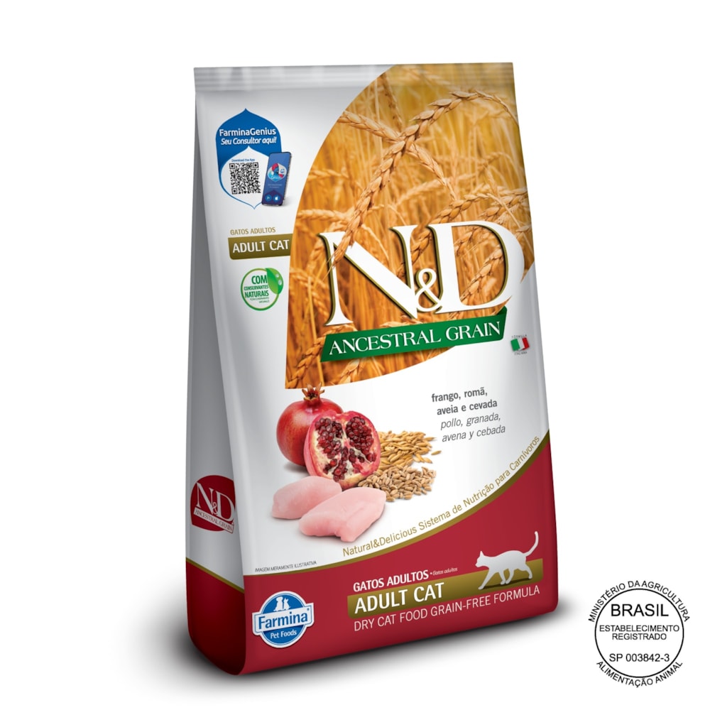 N&D Ancestral para Gatos Adultos de Todas as Raças Sabor Frango, Romã, Aveia e Cevada 1,5Kg