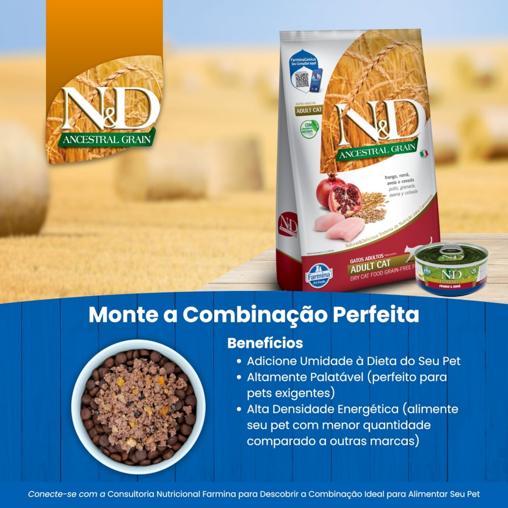 N&D Ancestral para Gatos Adultos de Todas as Raças Sabor Frango, Romã, Aveia e Cevada 7,5Kg