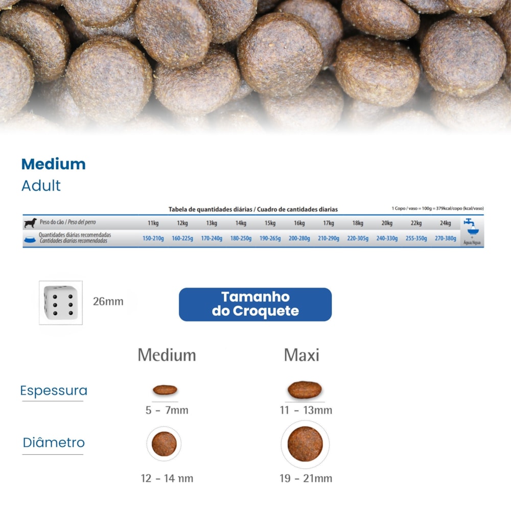 Tipo de produto: Alimento completo e balanceado para cães adultos de raças médias
