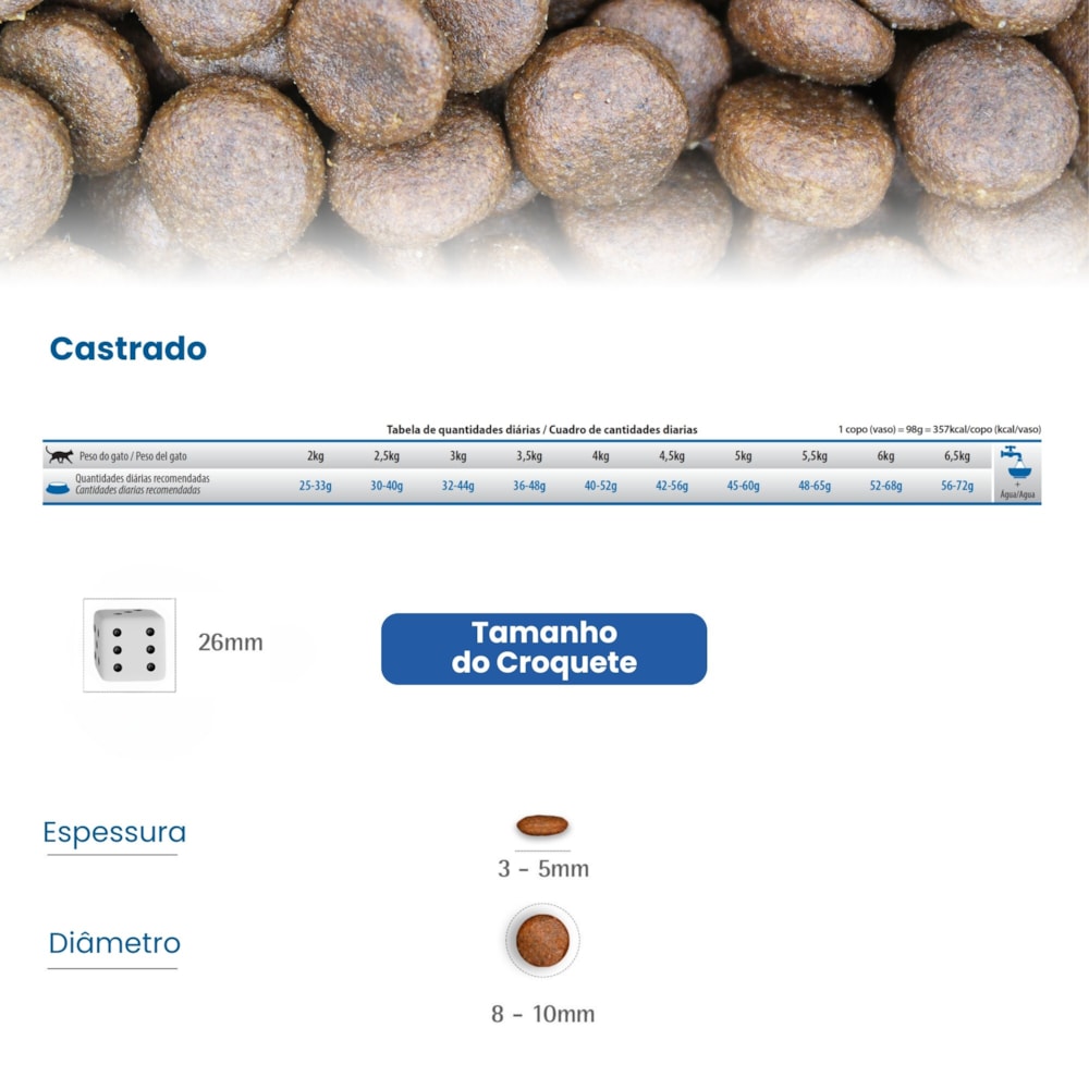 Tipo de produto: Alimento completo e balanceado para gatos adultos castrados