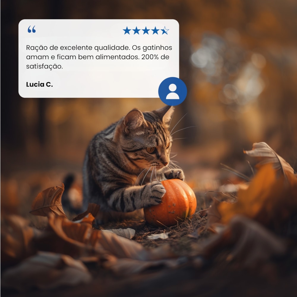 100% Livre de Ingredientes Geneticamente Modificados: Fórmula sem ingredientes geneticamente modificados, garantindo uma nutrição natural e segura para o seu pet.
