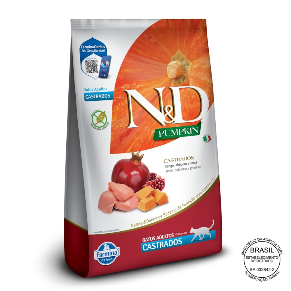 N&D Pumpkin para Gatos Adultos Castrados de Todas as Raças Sabor Frango, Abóbora e Romã 7,5Kg