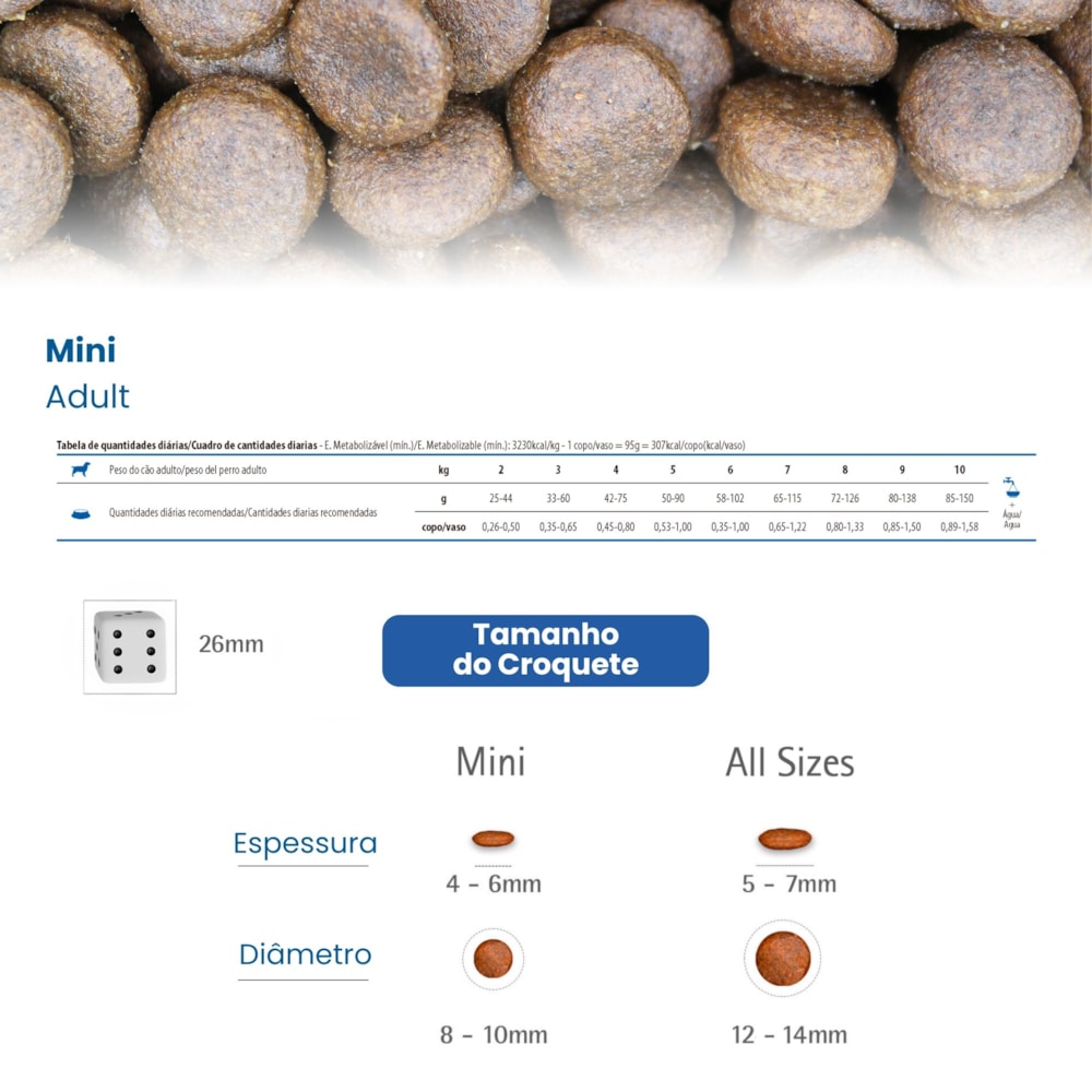 Importante: Consulte a TABELA DE QUANTIDADES DIÁRIAS para determinar a quantidade ideal para o seu cão. As quantidades sugeridas são em gramas e podem ser ajustadas conforme as condições físicas do seu pet ou a recomendação do Médico Veterinário. Não se esqueça de deixar sempre água fresca e limpa ao alcance do seu cão e levá-lo regularmente ao Médico Veterinário.
