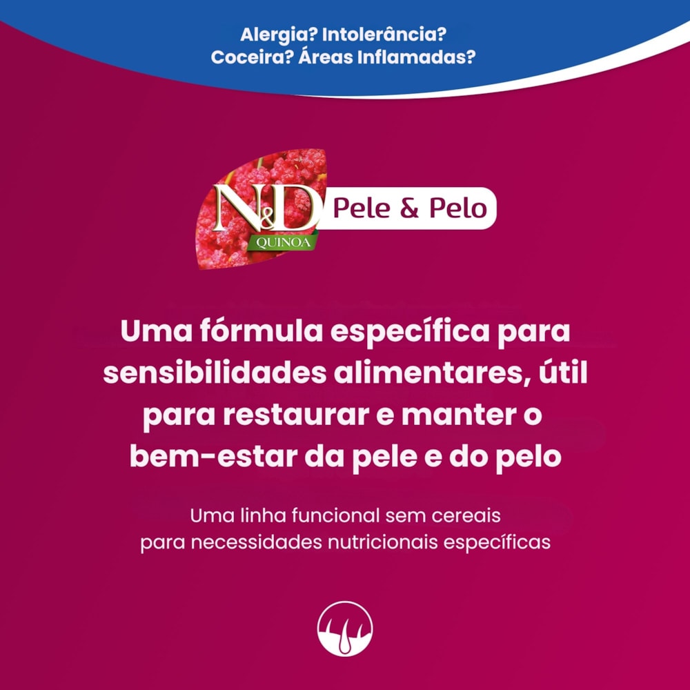 A linha N&D Quinoa foi desenvolvida para oferecer uma nutrição funcional, que vai além da alimentação básica, proporcionando suporte para diversas necessidades de saúde do seu cão. Com a inclusão de quinoa, um superalimento de alta biodisponibilidade, essa linha oferece uma combinação única de ingredientes cuidadosamente selecionados para promover vitalidade e equilíbrio nutricional.