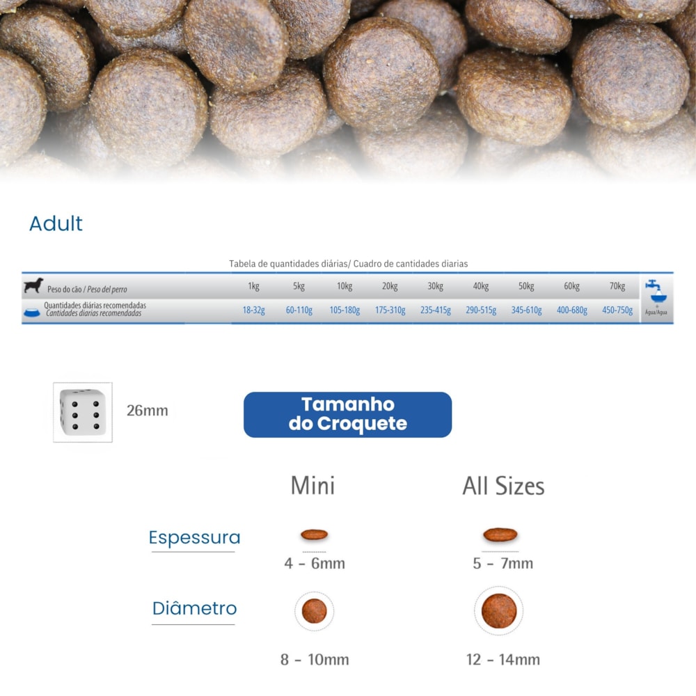 Modo de UsarMODO DE USAR: ver TABELA DE QUANTIDADES DIÁRIAS. Nota: As quantidades são sugeridas em gramas e podem ser alteradas de acordo com as condições físicas do cão e/ou recomendação do Médico Veterinário. Deixe sempre água fresca e limpa ao alcance de seu cão e leve-o regularmente ao Médico Veterinário.
