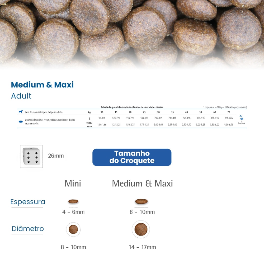 Tipo de produto: Alimento completo e balanceado para cães adultos de raças médias e grandes