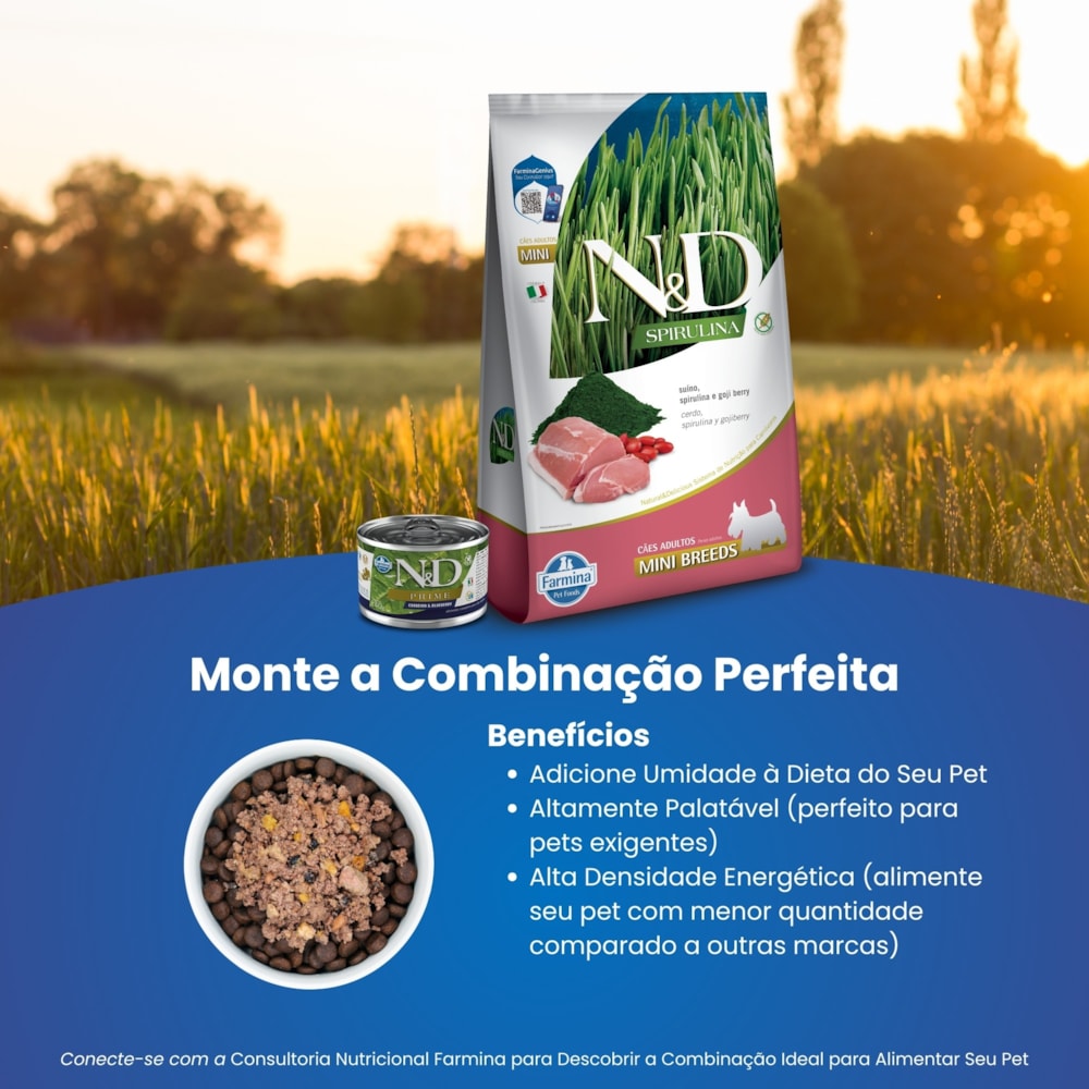 N&D Spirulina para Cães Adultos de Raças Mini e Pequenas - Sabor Suíno, Spirulina e Goji Berry 7Kg