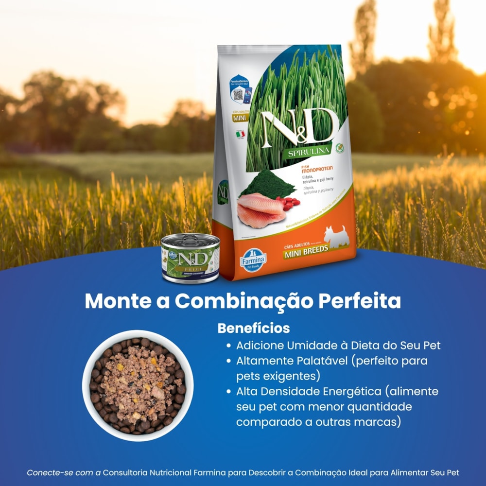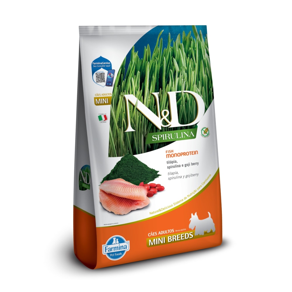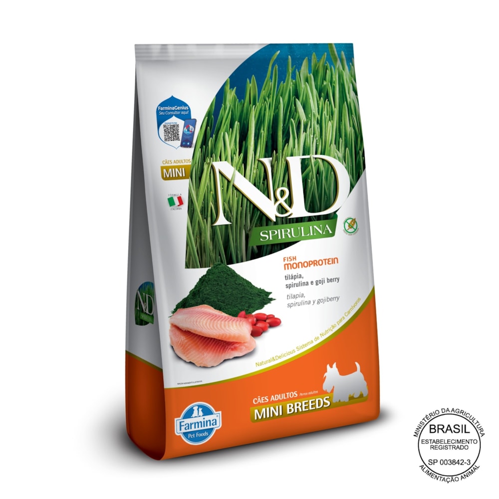 Ofereça ao seu pet a nutrição que ele merece com a Ração Seca Farmina N&D Spirulina. Esta receita é ideal para cães adultos de porte pequeno, com ingredientes livres de transgênicos, como Tilápia, Spirulina e Goji Berry. Experimente a diferença com N&D Spirulina — 100% de Garantia de Satisfação.