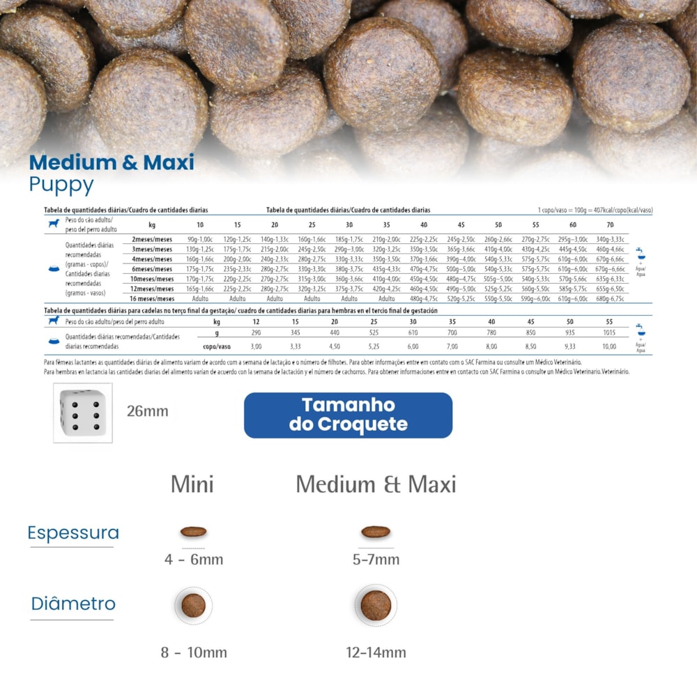 Tipo de produto: Alimento completo e balanceado para cães filhotes de raças médias e grandes e para cadelas no terço final da gestação e em lactação.