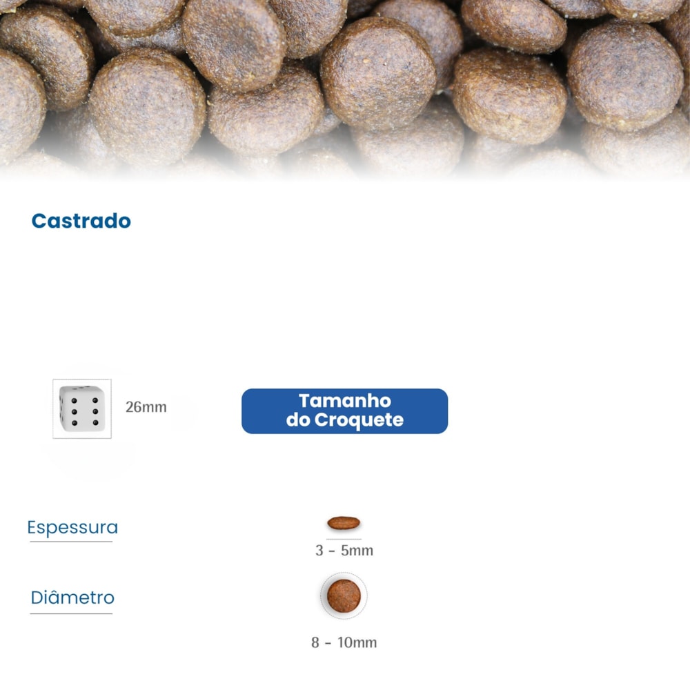 Tamanho do croquete: Diâmetro: 8-10mm; Espessura: 3-5mm