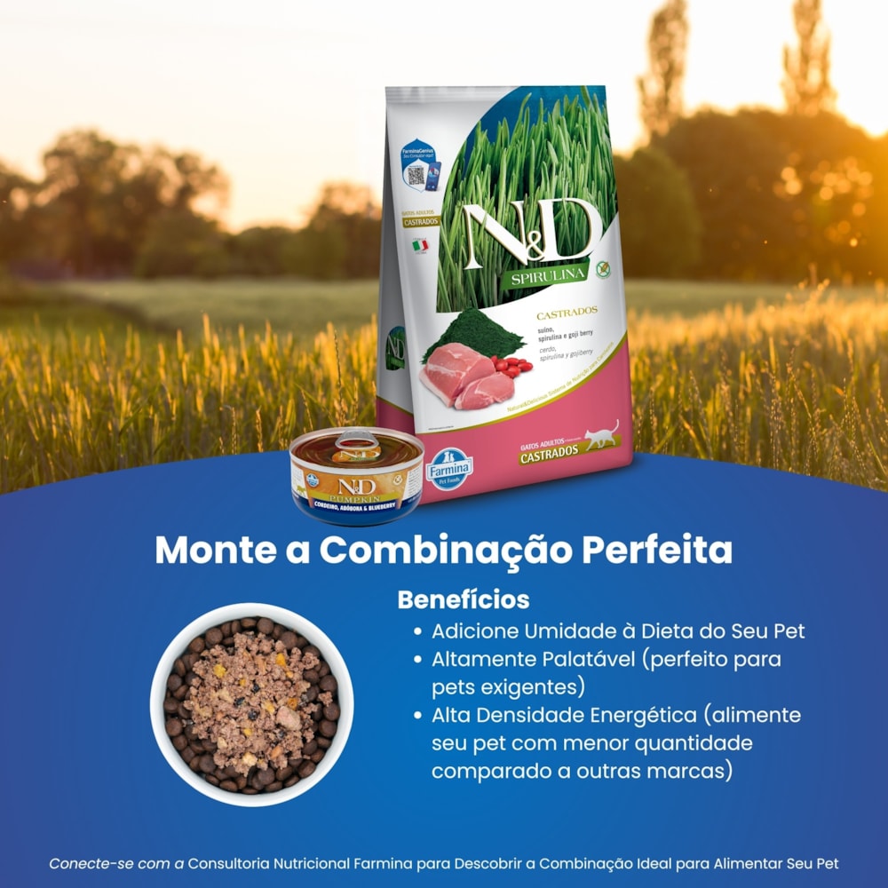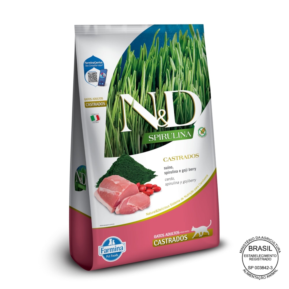 Ração Seca Farmina N&D Spirulina para Gatos Adultos de Todas as Raças Sabor Suíno, Spirulina e Goji Berry 7Kg