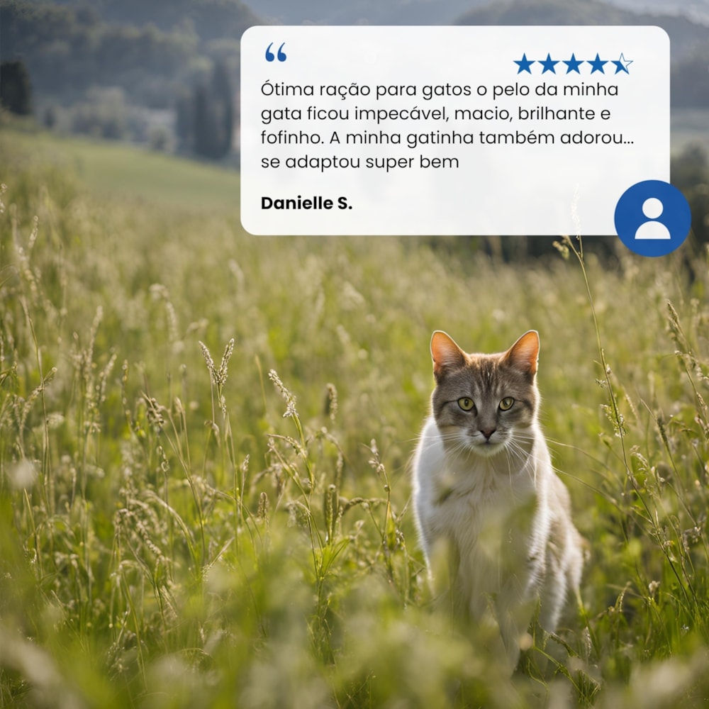 100% Livre de Ingredientes Geneticamente Modificados: Fórmula sem ingredientes geneticamente modificados, garantindo uma nutrição natural e segura para o seu pet.