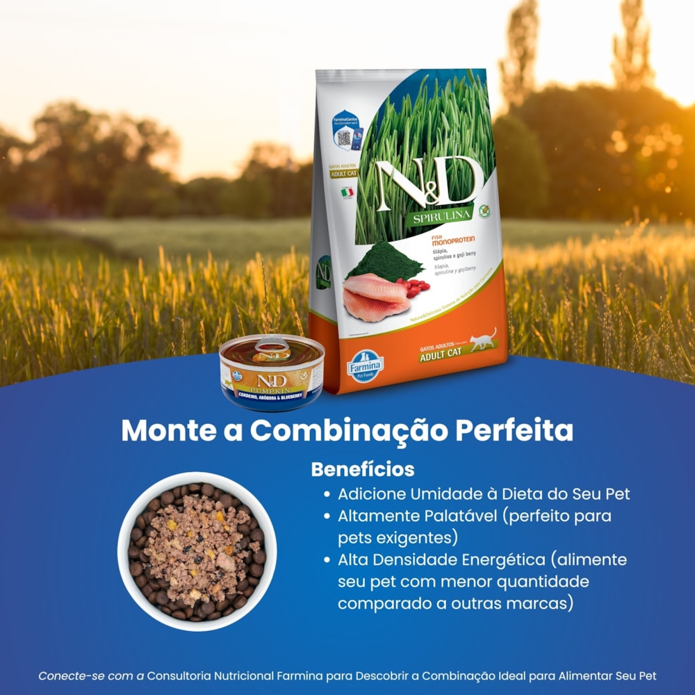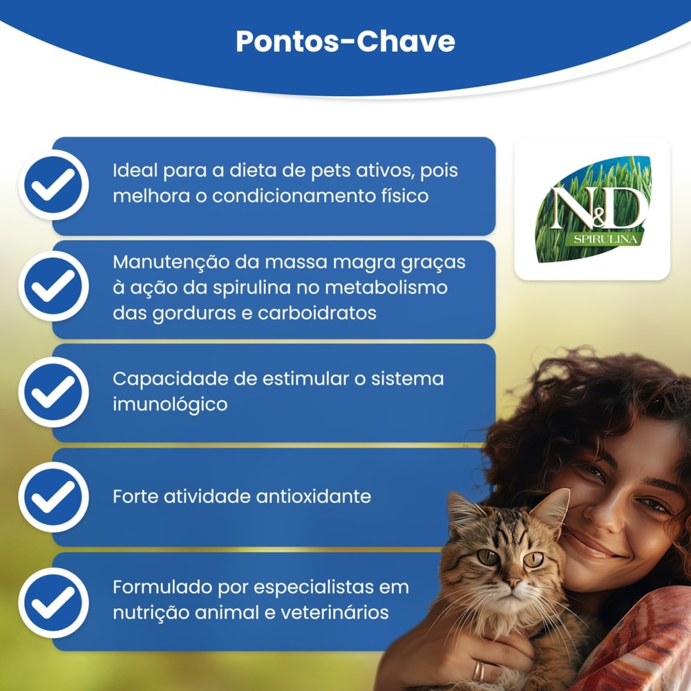 Garanta o bem-estar do seu gato com a Ração Seca Farmina N&D Spirulina e proporcione a ele uma alimentação saudável e equilibrada!